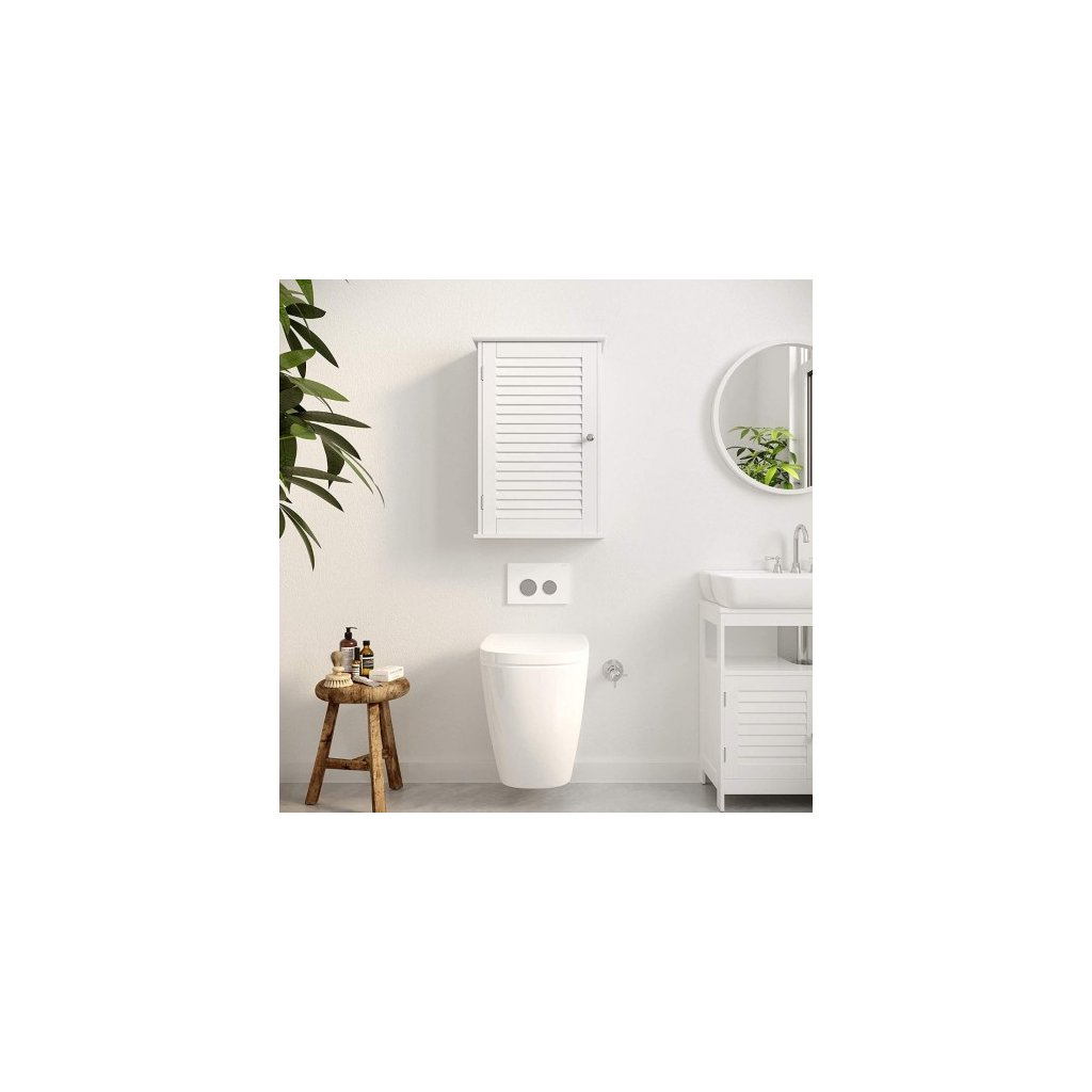Táto jednoduchá, ale moderná nástenná skrinka, doplnená o dizajn jedných zatváracích dverí, má elegantné telo vyrobené z MDF triedy. Dokonale sa hodí do vašej kúpeľne, obývacej izby, vchodu alebo do akejkoľvek inej miestnosti. Fľaše s čistiacim prostriedkom sú príliš vysoké? Uteráky nikdy nemajú dostatok miesta na uloženie? Nezúfajte, polička s 5 výškovými nastaveniami vám určite pomôže!