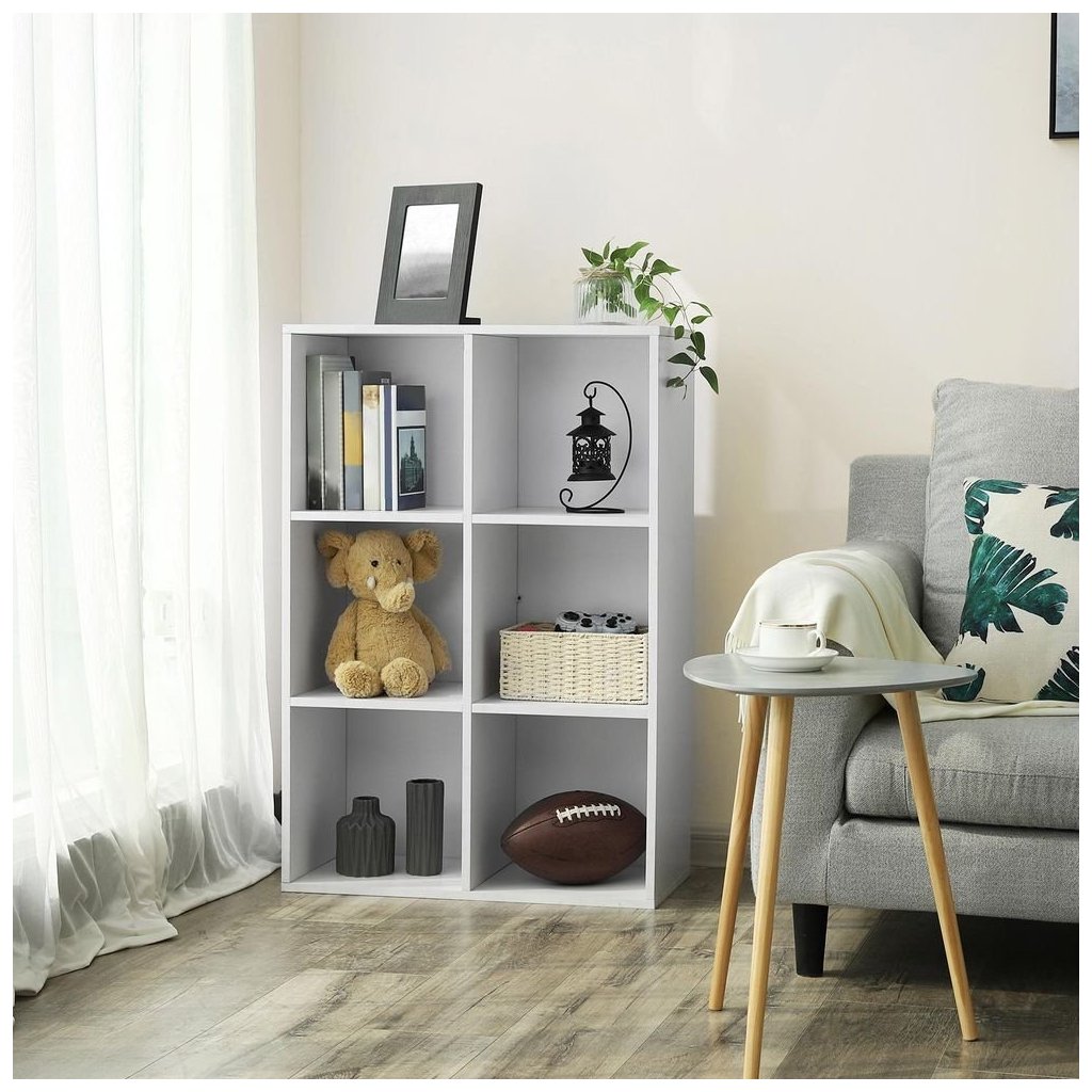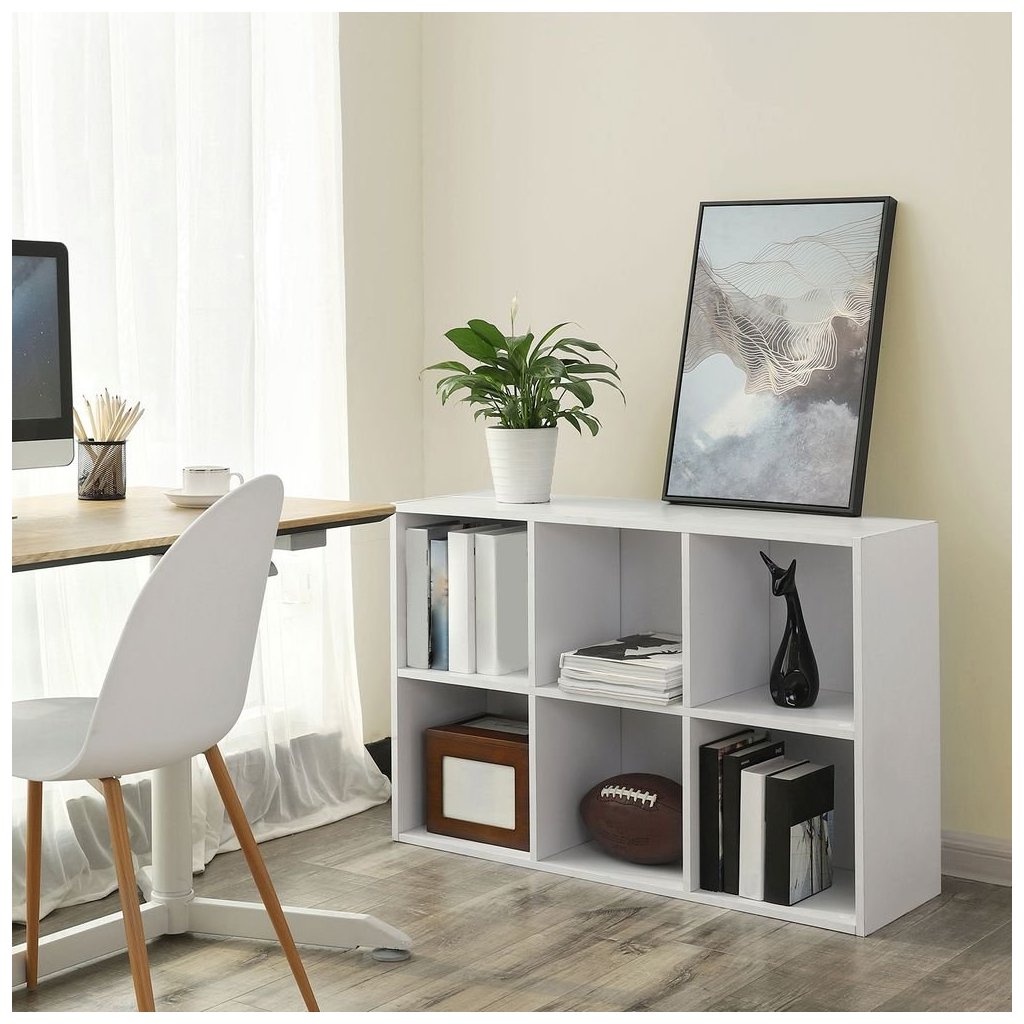 VASAGLE Knižnica so 6 priehradkami biela LBC203D – štýlové a praktické riešenie úložného priestoru