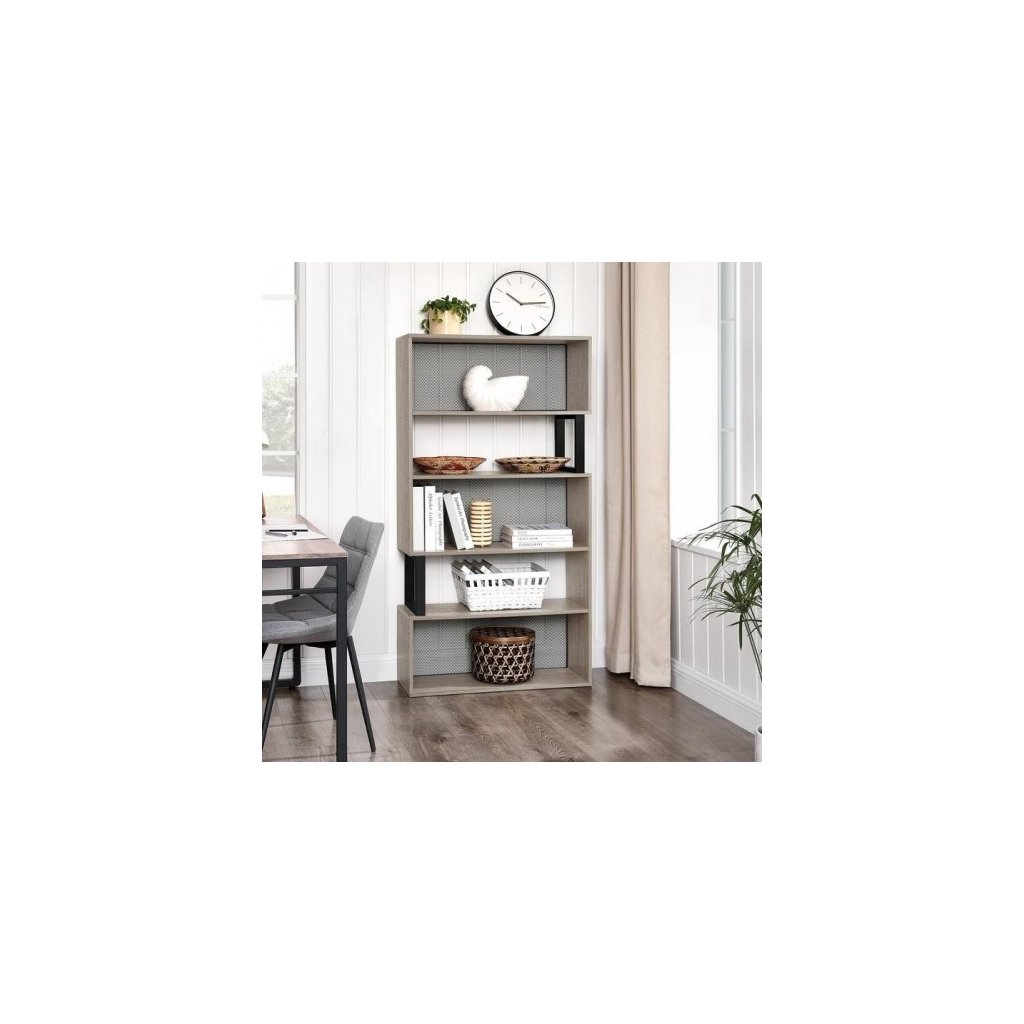 Neobetujte svoj štýl pri pridávaní úložného priestoru do domácnosti. Táto moderná knižnica v dubovom prevedení ponúka tú pravú kombináciu štýlu a efektivity, aby ste si uchovali svoju zbierku kníh pokope. Knižnica sa skládá z kovových konštrukcií s matnou čiernou povrchovou úpravou a drevotrieskových políc s dekorom šedého dubu.