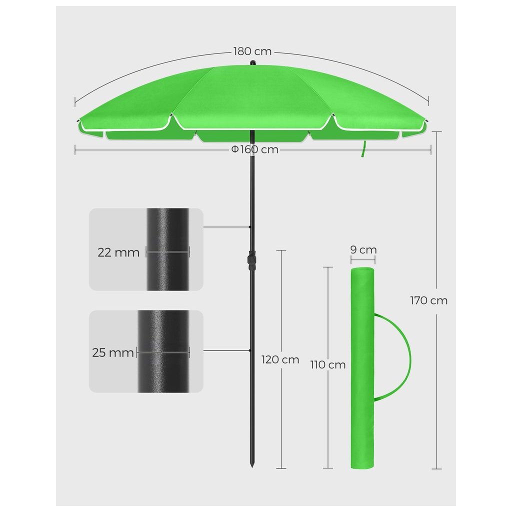 Záhradný / plážový slnečník SONGMICS GPU60GN, 1,6 m