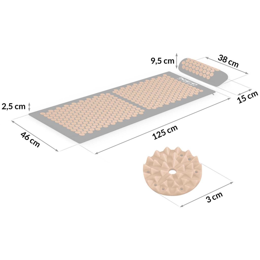 - Počet hrotov: Podložka obsahuje 378 hrotov a vankúš 51 hrotov, čo zaisťuje efektívnu stimuláciu.