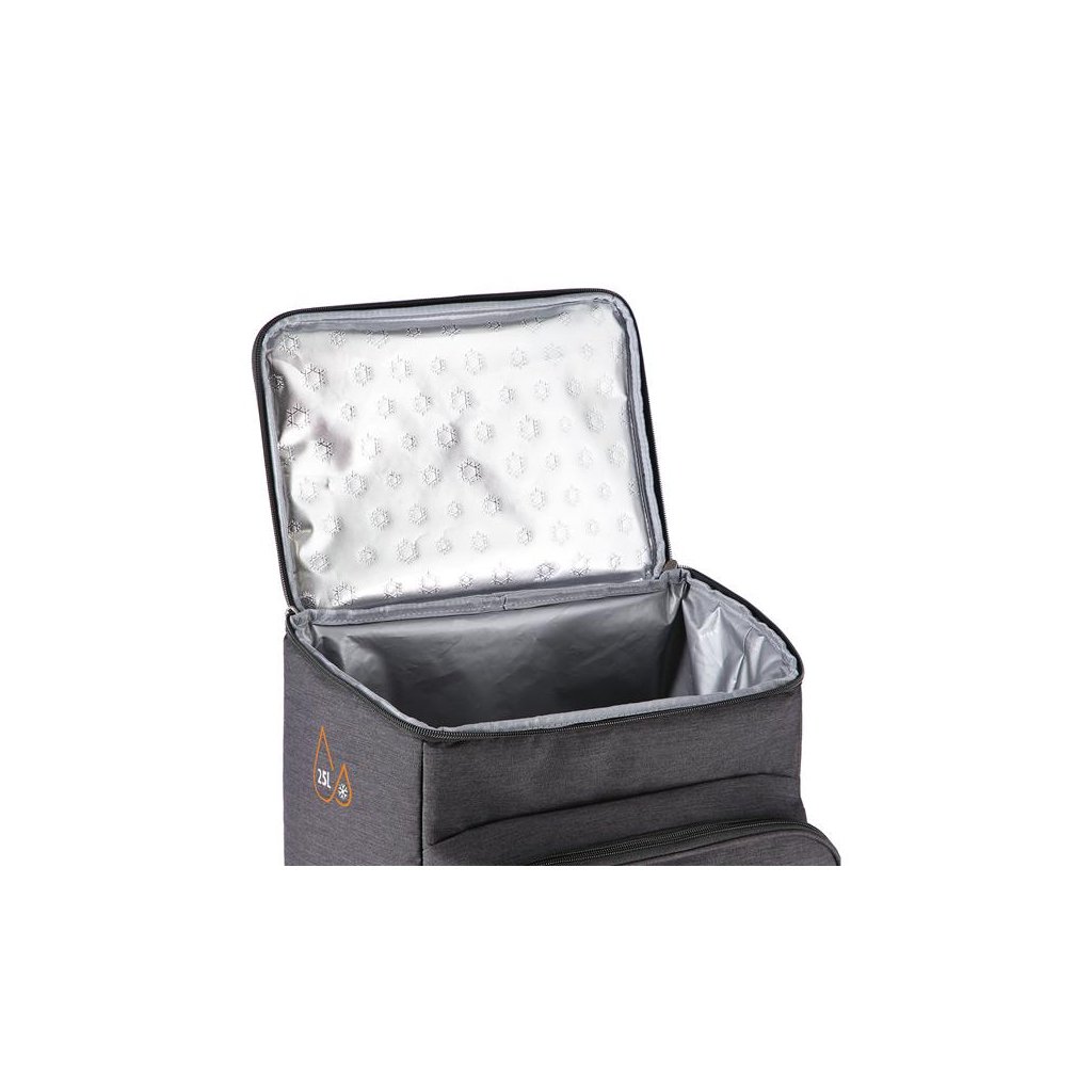 Vyrobené z odolnej tkaninz 300D Oxford a podšité izolačným PEVA, hlavný oddiel poskytuje vynikajúcu tepelnú ochranu. Taška tiež ponúka ďalší priestor vďaka dvom bočným sieťovaným vreckám a dvom predným vreckám na zips, ideálny na uloženie vecí, ktoré nevyžadujú tepelnú izoláciu. Vďaka objemu 25 litrov a nízkej hmotnosti je nielen veľmi priestranná, ale taktiež sa ľahko prepravuje, čo z nej robí vášho spoľahlivého partnera pri akomkoľvek outdoorovom dobrodružstve. NC3140 má navyše nastaviteľné ramenné popruhy, ktoré umožňujú nosenie na chrbte ako batoh. Toto riešenie je ideálne pre ľudí, ktorí chcú mať voľné ruky na cestách, či už pri pešej turistike alebo na bicykli.