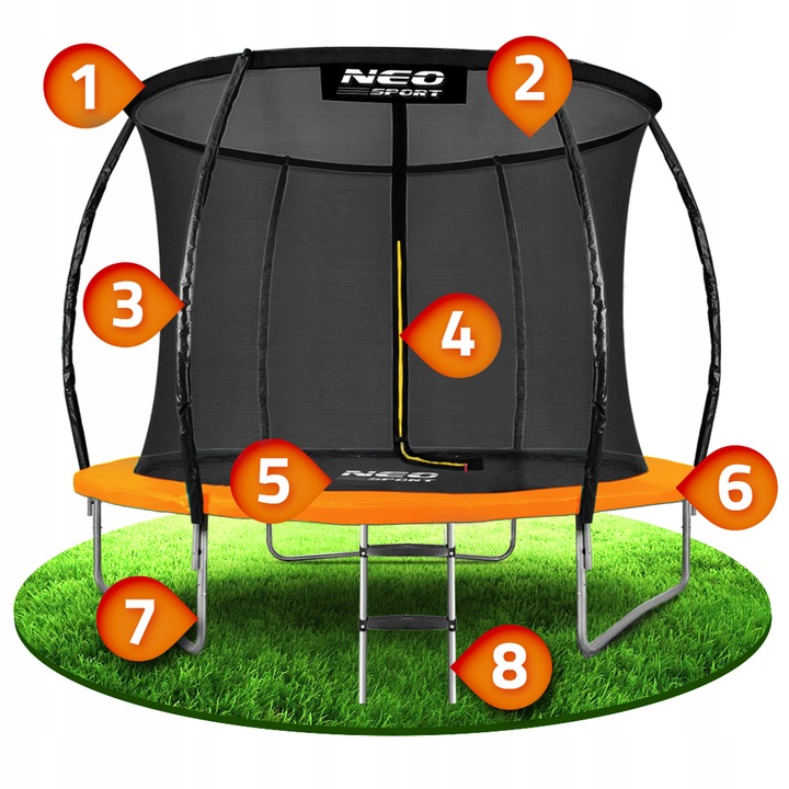 Detská záhradná trampolína Neo-Sport NS-10C201 s veľkým priemerom 312 cm (10 ft) je ideálnym doplnkom pre aktívnu zábavu detí v záhrade alebo na dvore. Vďaka pevnej oceľovej konštrukcii, kvalitnej odrazovej ploche a bezpečnostnej sieti ponúka bezpečný a pohodlný priestor na skákanie, rozvoj motoriky a koordinácie pohybov.