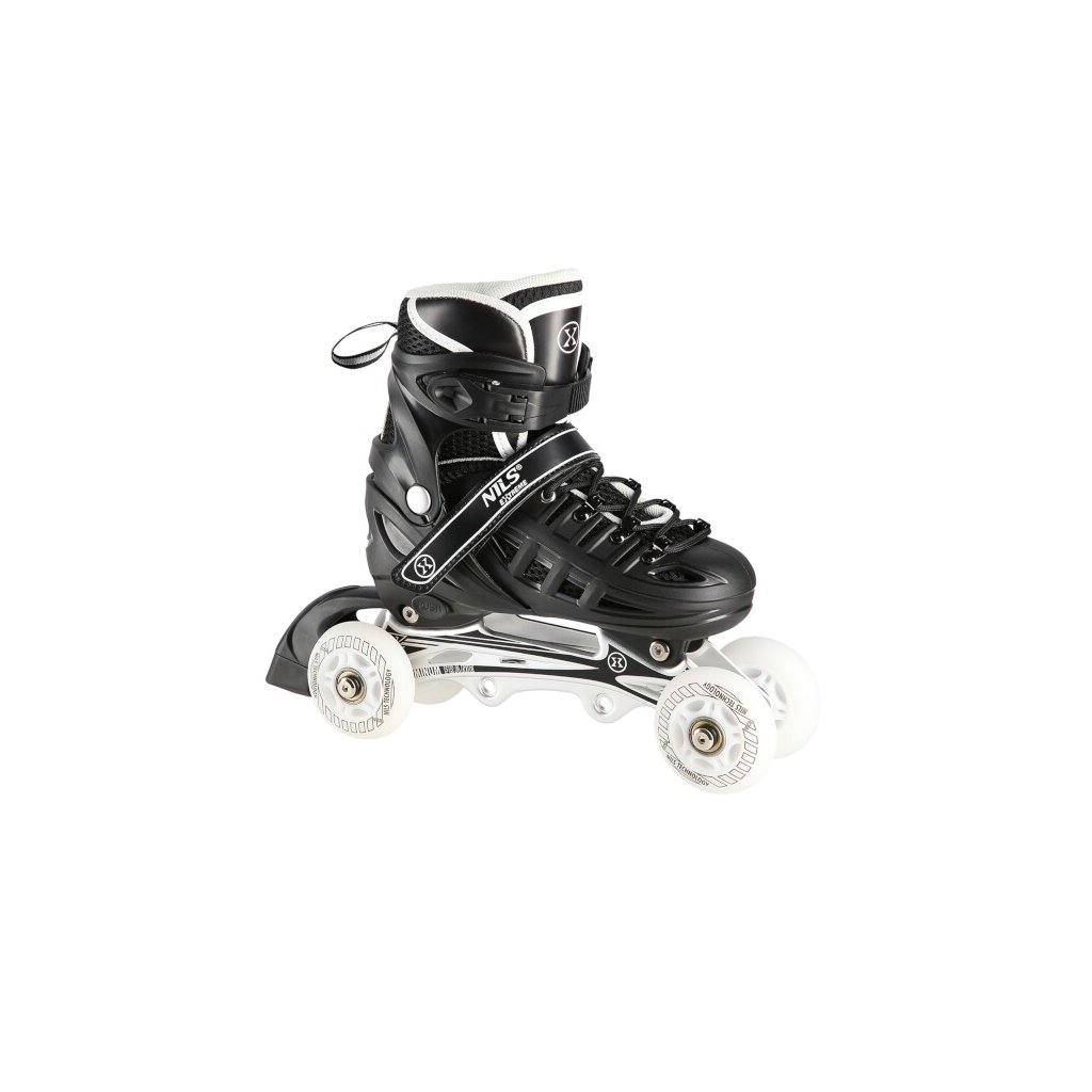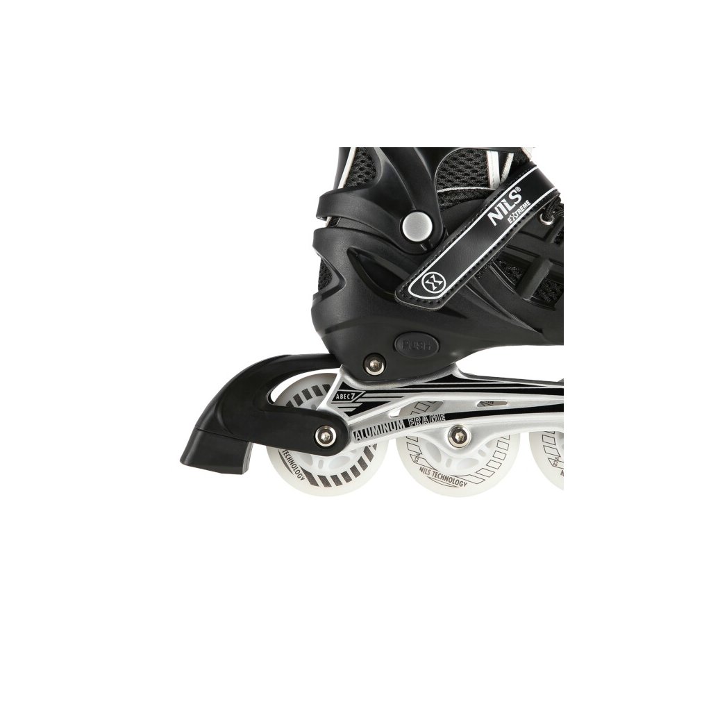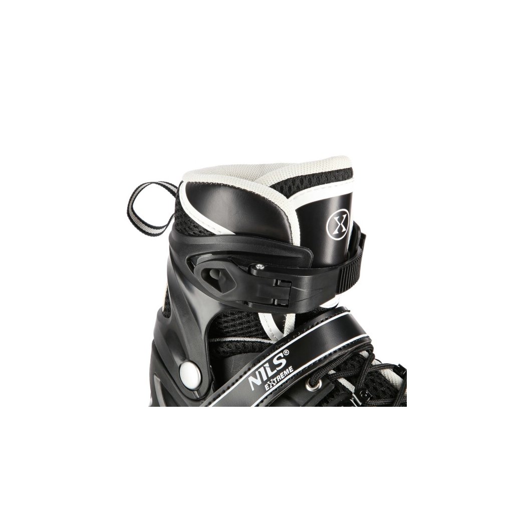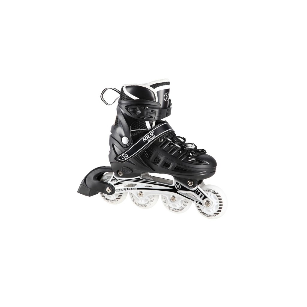 NILS Extreme NH10905 je obľúbená súprava korčúľ s variabilným podvozkom, svietiacimi kolieskami a nožom na ľad. 2. generácia prináša nový svieži vzhľad korčúľ. HN10905 je určená pre začiatočníkov a pokročilých korčuliarov. Škrupina korčule z tvrdého plastu má tvrdú špičku a vetracie otvory pre lepšie prúdenie vzduchu cez vnútornú topánku. Vnútornú topánku tvorí sieťovina, priedušná membrána, 8 milimetrov hustej peny a EVA. Zapínanie korčule tvorí klasická trojkombinácia: šnurovanie, pásik na suchý zips a dvojdielna pracka. Pod pätou sa nachádza tlačidlo na zmenu veľkosti korčule. Po stlačení tlačidla možno posunúť špičku topánky a nastaviť tak jednu zo 4 veľkostí. Tento systém umožňuje prispôsobiť veľkosť nohe a slúži ako "rastúca" obuv, ktorá rastie spolu s detskou nohou a zároveň znižuje výslednú cenu korčúľ. Rám je vyrobený z hliníka a sú v ňom vložené 4 polyuretánové kolieska s LED diódami, ktoré sa pri otáčaní rozsvietia. Kolieska sú vybavené ložiskami ABEC 7, ktoré sú ideálnym kompromisom pre mierne pokročilých korčuliarov. Z výroby sú kolesá uložené v rade (in-line) a súčasťou dodávky je sada skrutiek a podložiek na nastavenie kolies na usporiadanie 2+2 a 2+1+1. Nôž na ľad je vyrobený z vysoko uhlíkovej nehrdzavejúcej ocele.