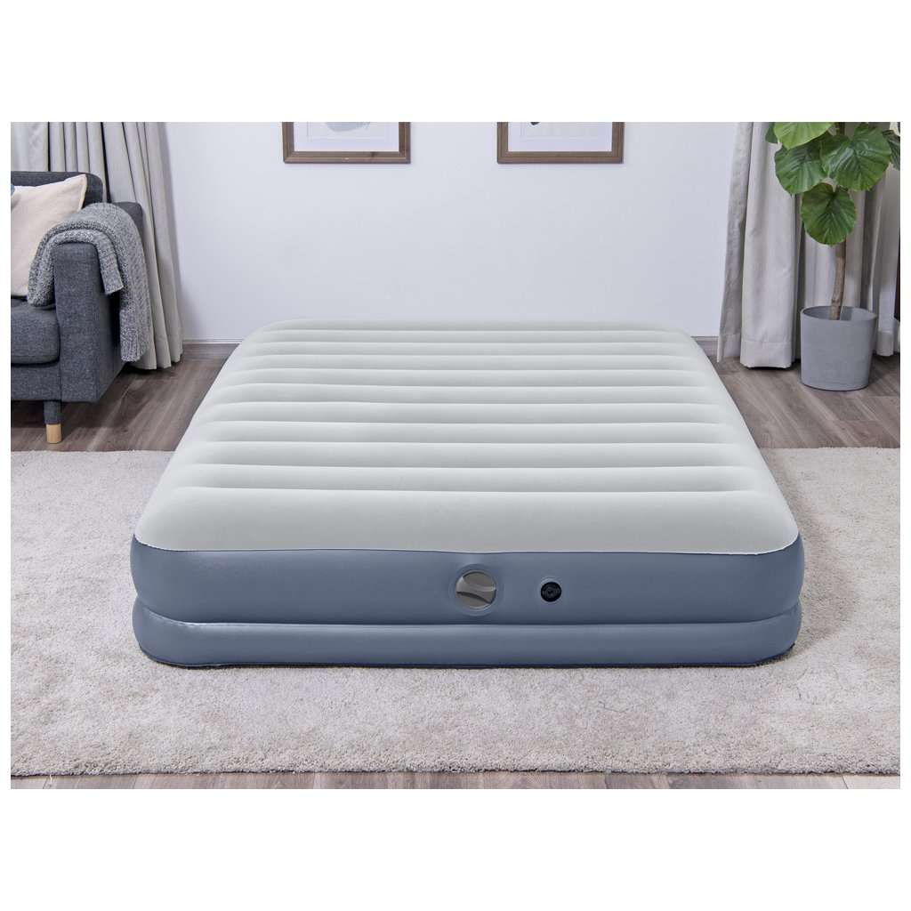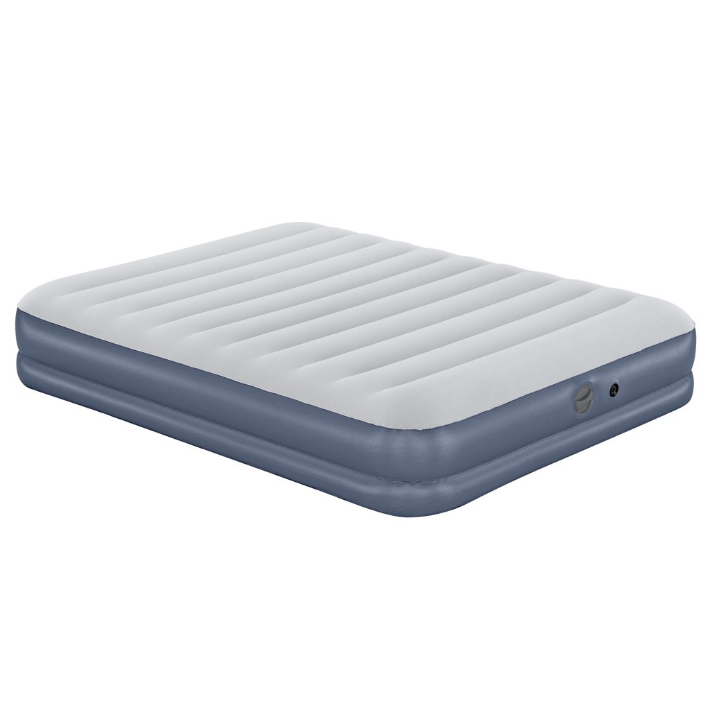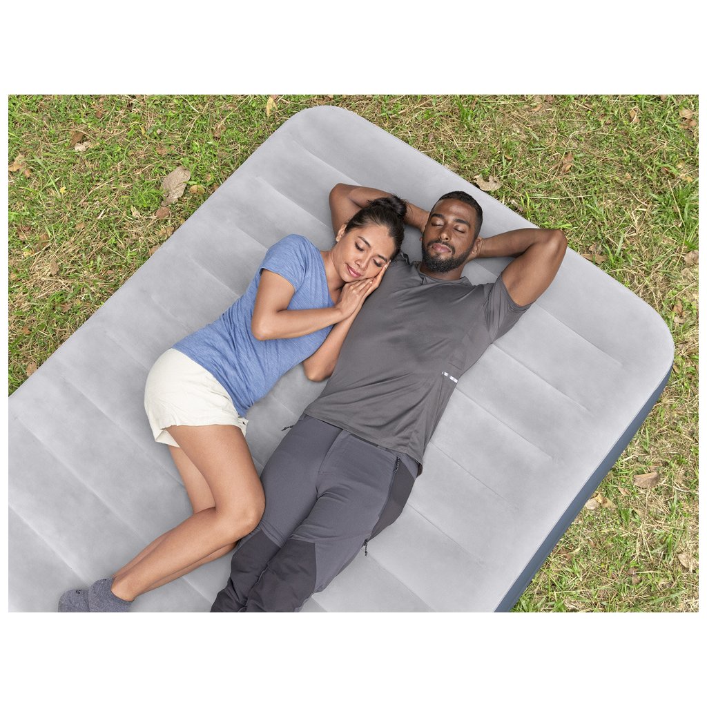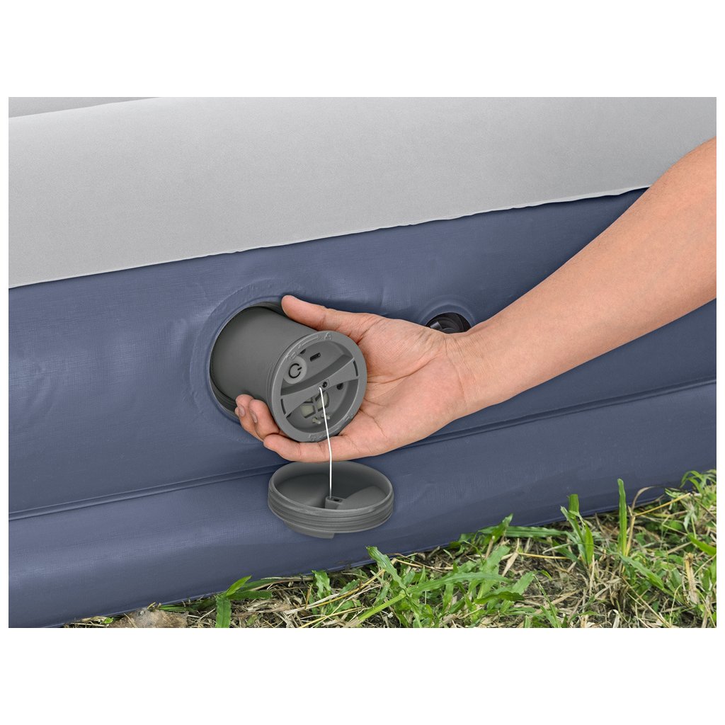 Dvojmatrac Tritech Air Mattress Queen Bestway je nafukovacia posteľ určená na vonkajšie aj vnútorné použitie, je teda výbornou alternatívou k náhradnému matracu a výborne sa hodí aj na relax, pláž, kempovanie alebo spanie vonku v stane. Na matrac s rozmermi 203 x 152 x 25 cm sa bez problémov zmestia dvaja dospelí. Vnútorná štruktúra matraca je vyrobená z materiálu Tritech™, ktorý zaisťuje odolnosť a pevnosť a zároveň umožňuje matracu zachovať si rovnaký tvar bez ohľadu na to, koľkokrát sa nafúkne a vyfúkne. Vnútorná pokroková technológia I-beam zabezpečí stabilitu matraca spojením spodnej a hornej časti povrchu matraca vodorovnými pásikmi. Veľkou výhodou matraca je vstavaná, odnímateľná batériová vzduchová pumpa, ktorá umožňuje rýchle automatické nafúknutie matraca a rýchle vyfúknutie vytiahnutím pumpy z matraca. Po vybratí je možné pumpu nabíjať pomocou priloženého USB kábla. Vrchná časť matraca je pokrytá mäkkým vinylovým materiálom.