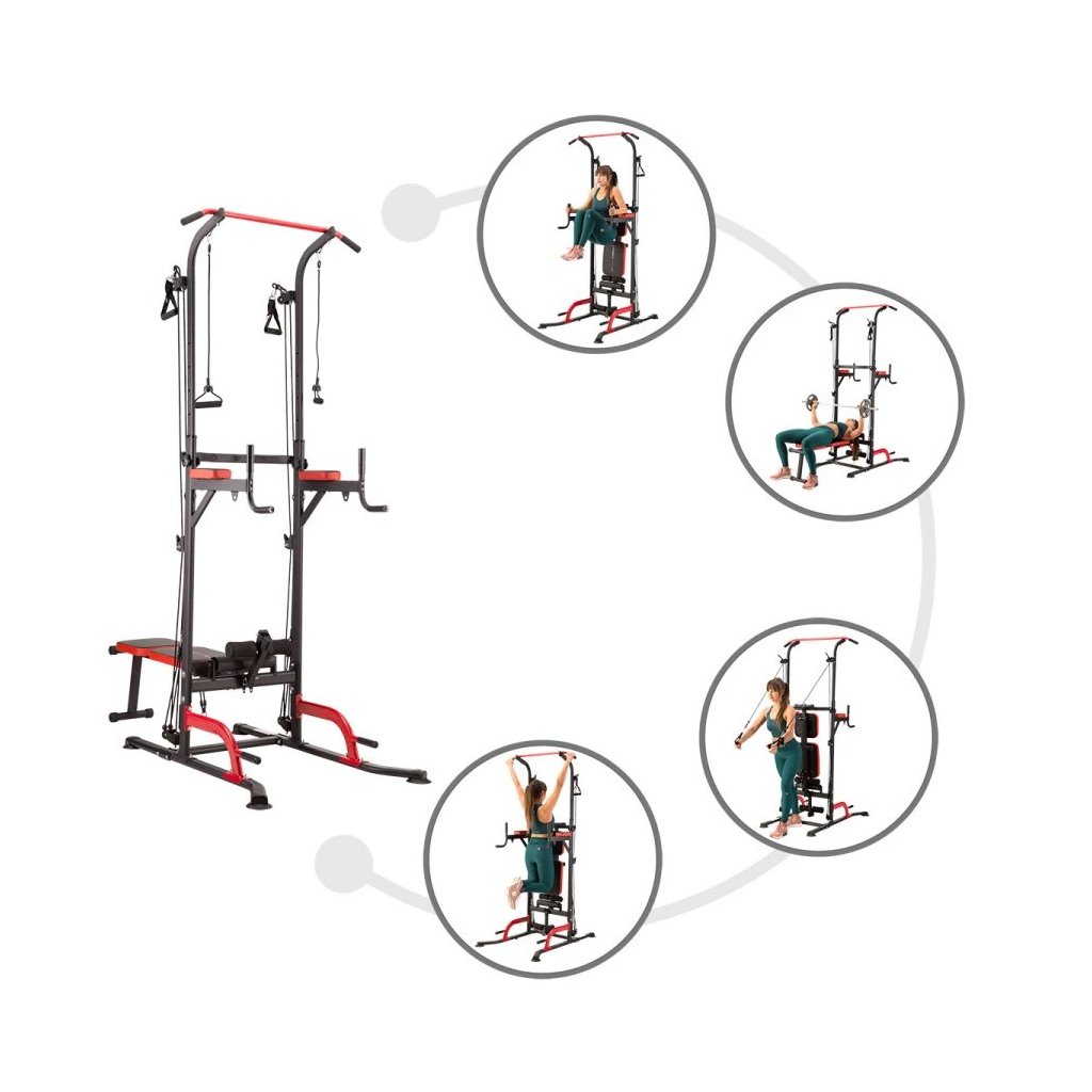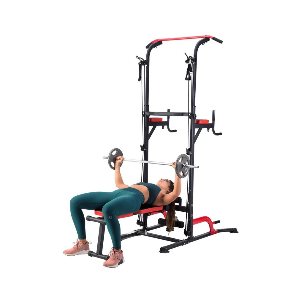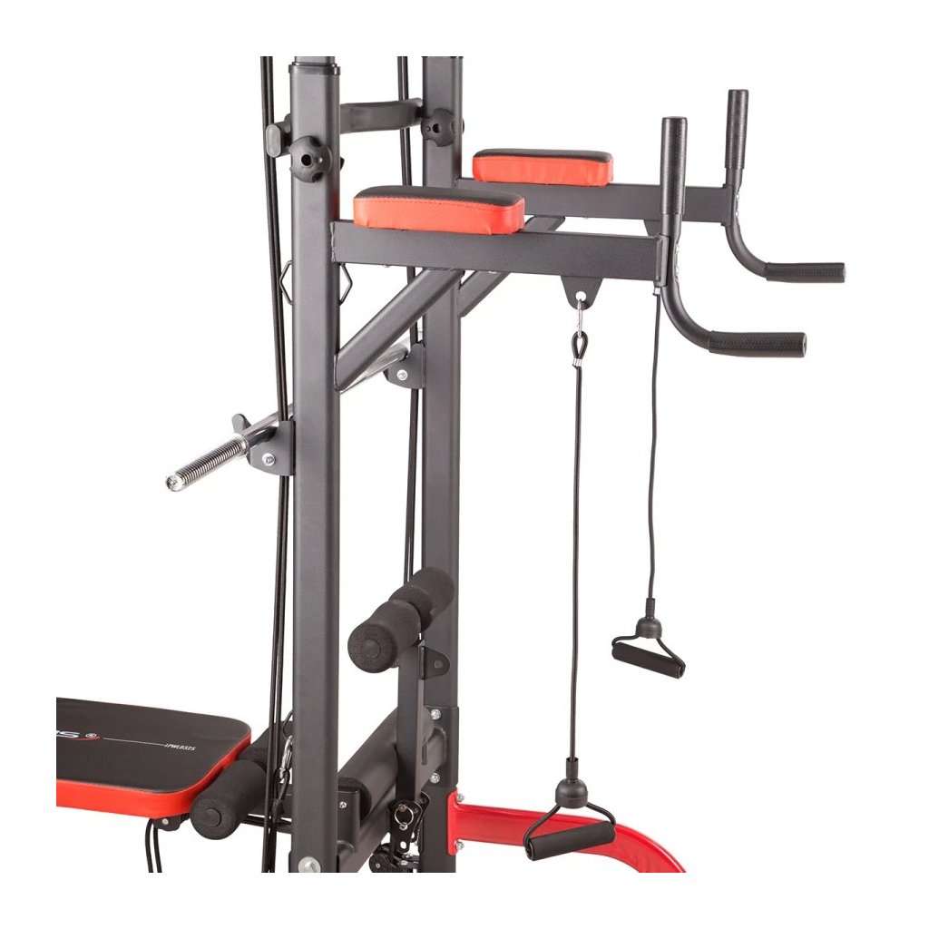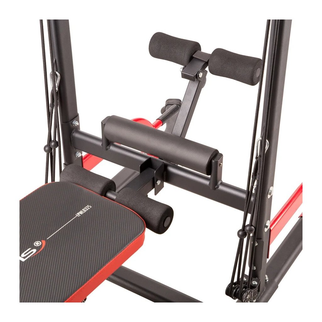 Multifunkčné zariadenie PWL8325 spája hrazdu, bradlá, hornú a dolnú kladku, podpery na kliky a nastaviteľnú lavičku, čím vytvára kompletnú domácu posilňovňu. Vďaka integrovanej nakladacej osi a držiaku na veľkú činku môžete trénovať aj bench press, čo z tohto zariadenia robí všestranného partnera pre rozvoj sily a svalovej hmoty.