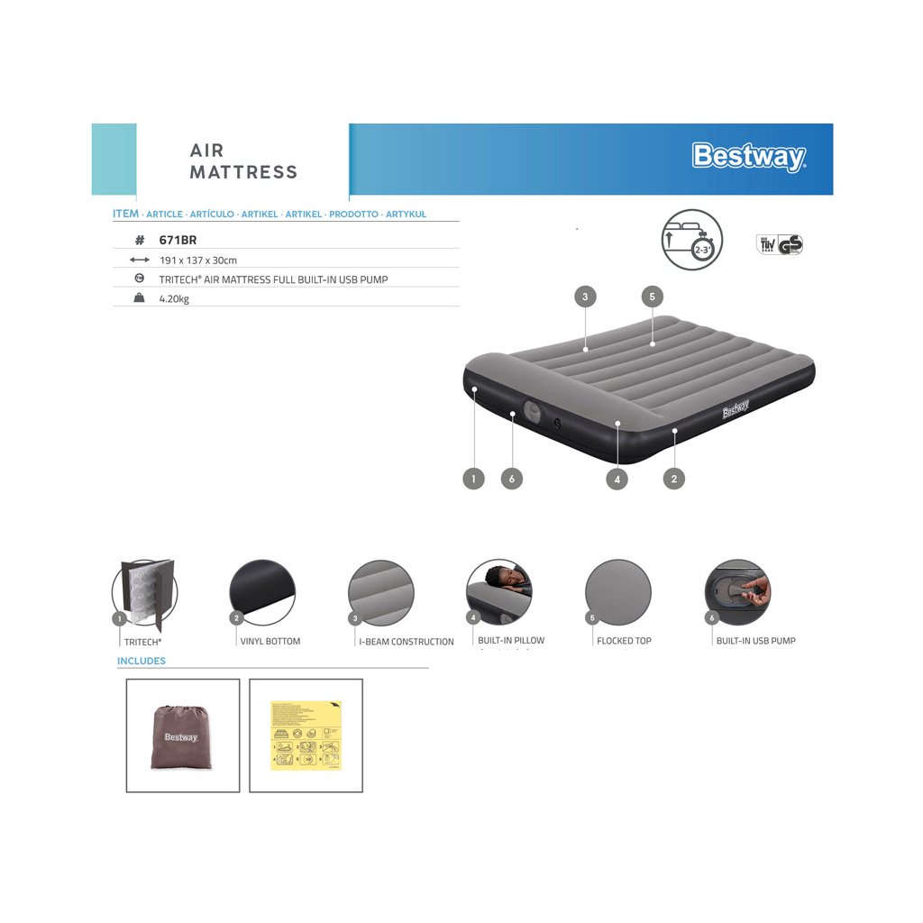 Nafukovací matrac Tritech pre 2 osoby + vstavaná USB pumpa Bestway 671BR