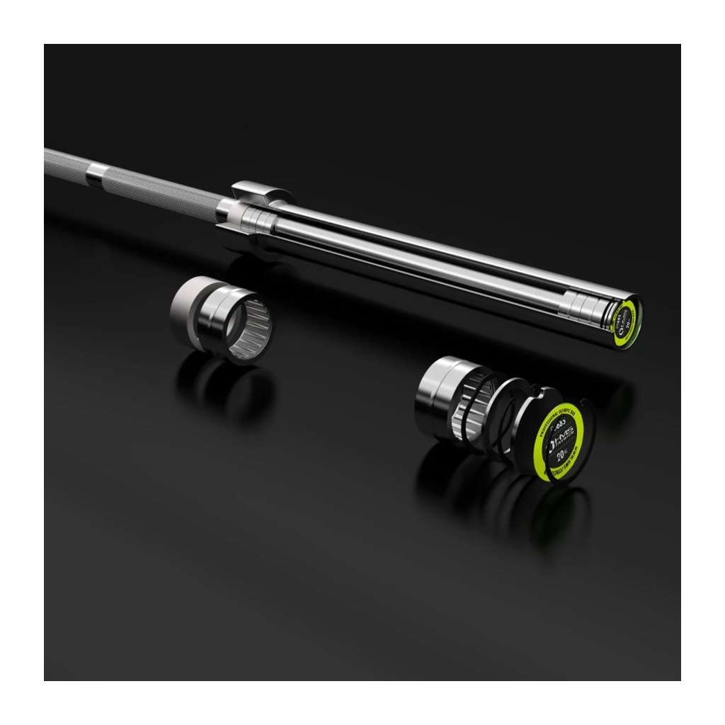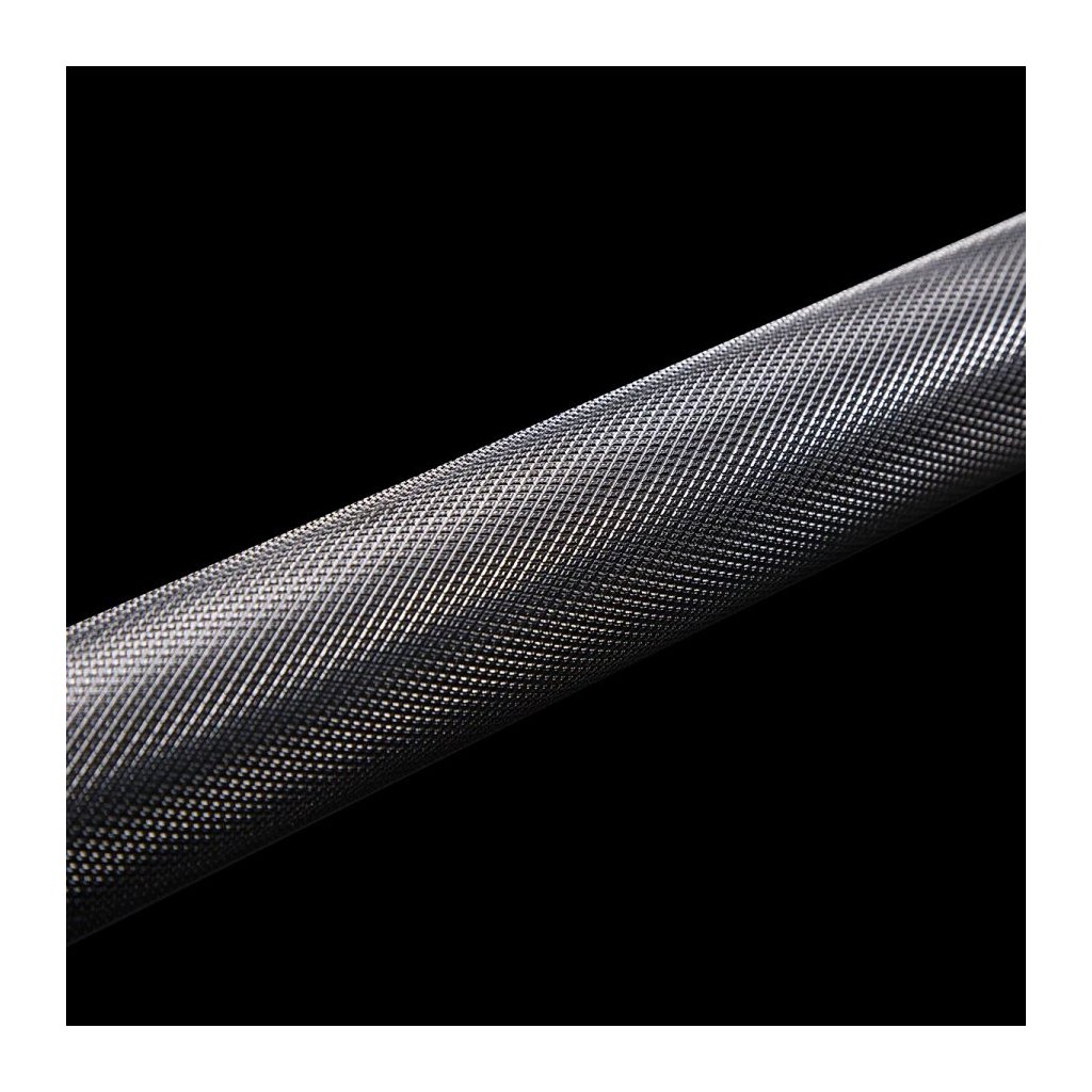Pre maximálny komfort a bezpečné uchopenie je úchopová časť hriadeľa precízne vrúbkovaná. Priemer úchopu 28 mm poskytuje stabilitu a istotu pri každom opakovaní, či už ide o drepy, mŕtve ťahy, tlak na lavičke alebo vzpieranie.