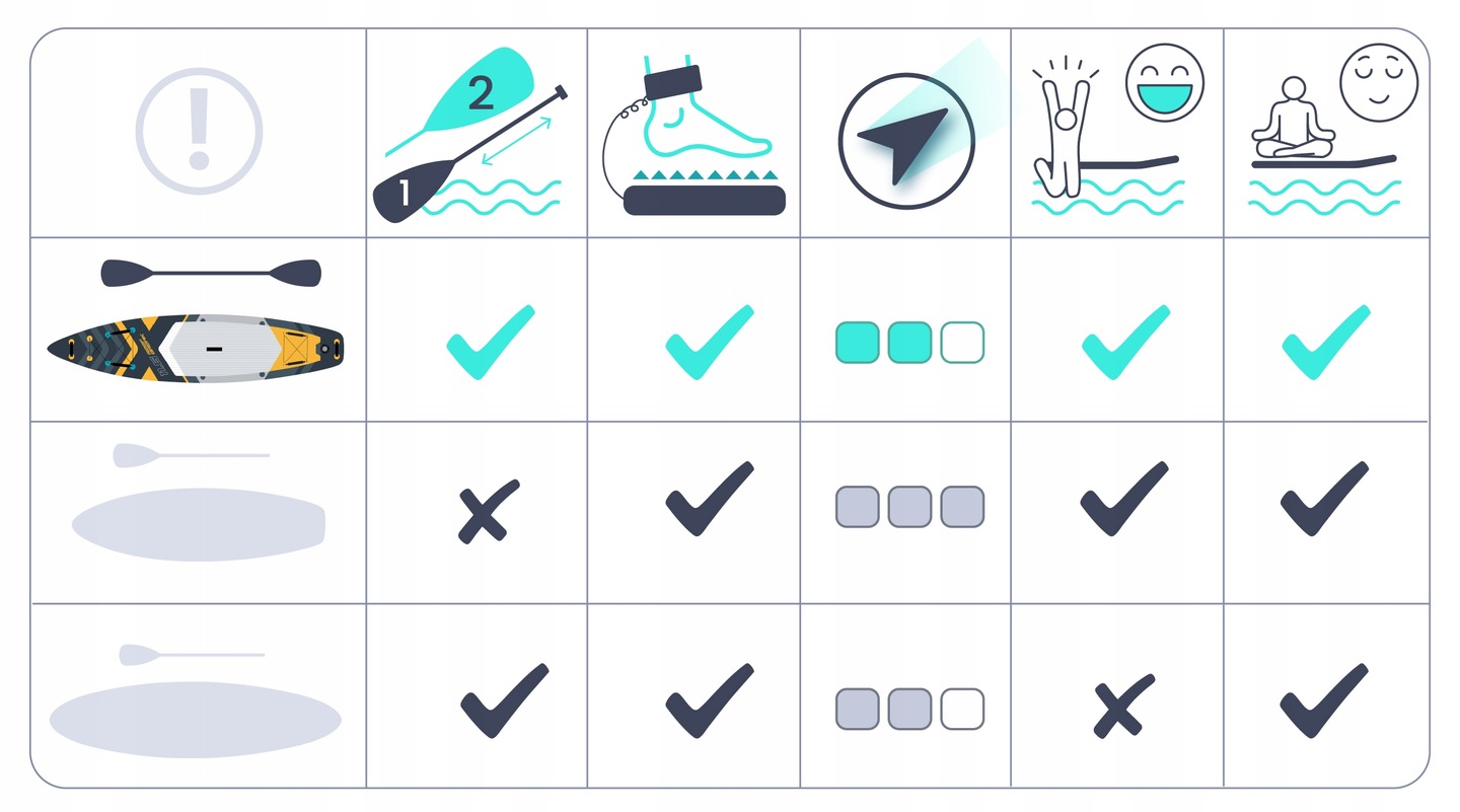 - Materiál: tvrdý Drop Stitch Light s trojvrstvovým PVC, ktorý zaisťuje stabilitu, trvácnosť a odolnosť proti poškodeniu.