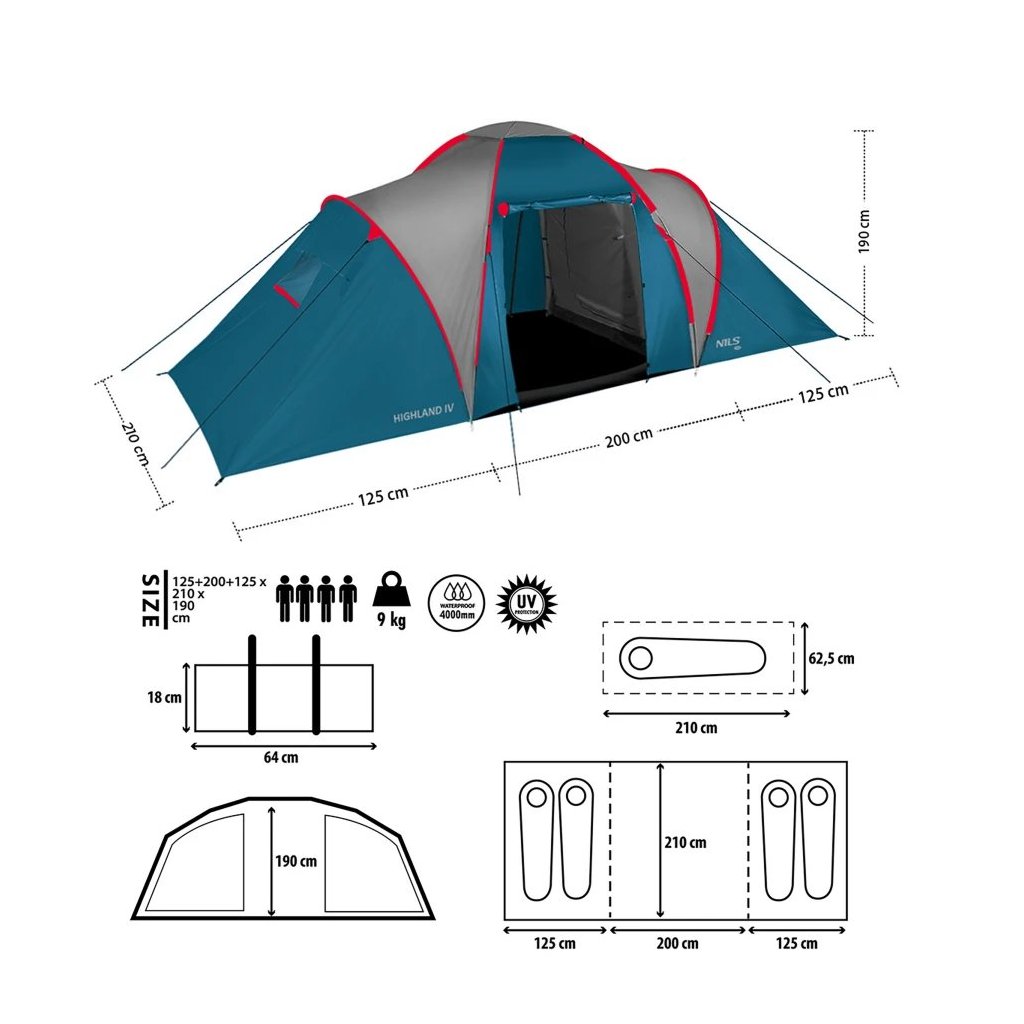 Rodinný stan NILS Camp NC6031 Highland modrý/svetlo šedý