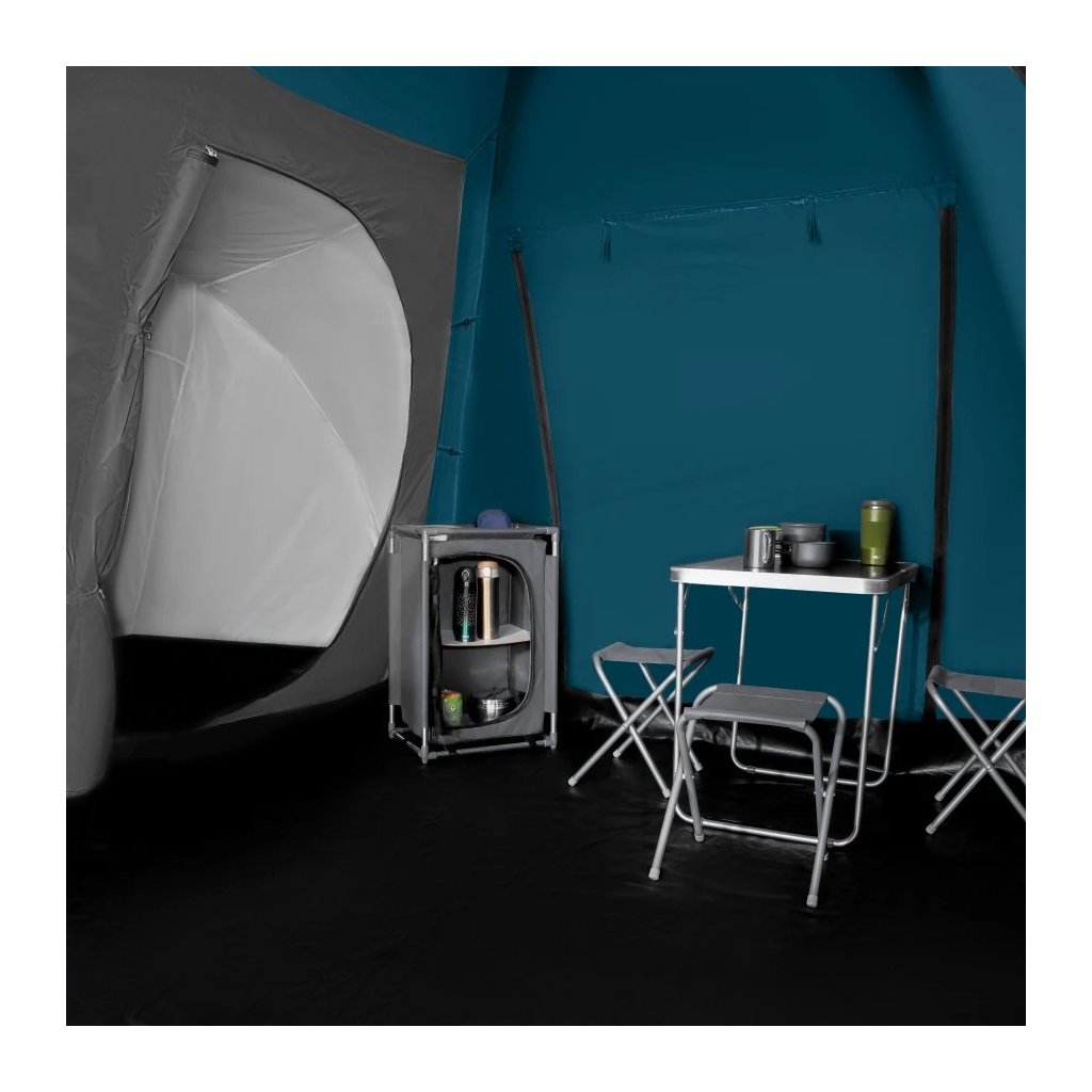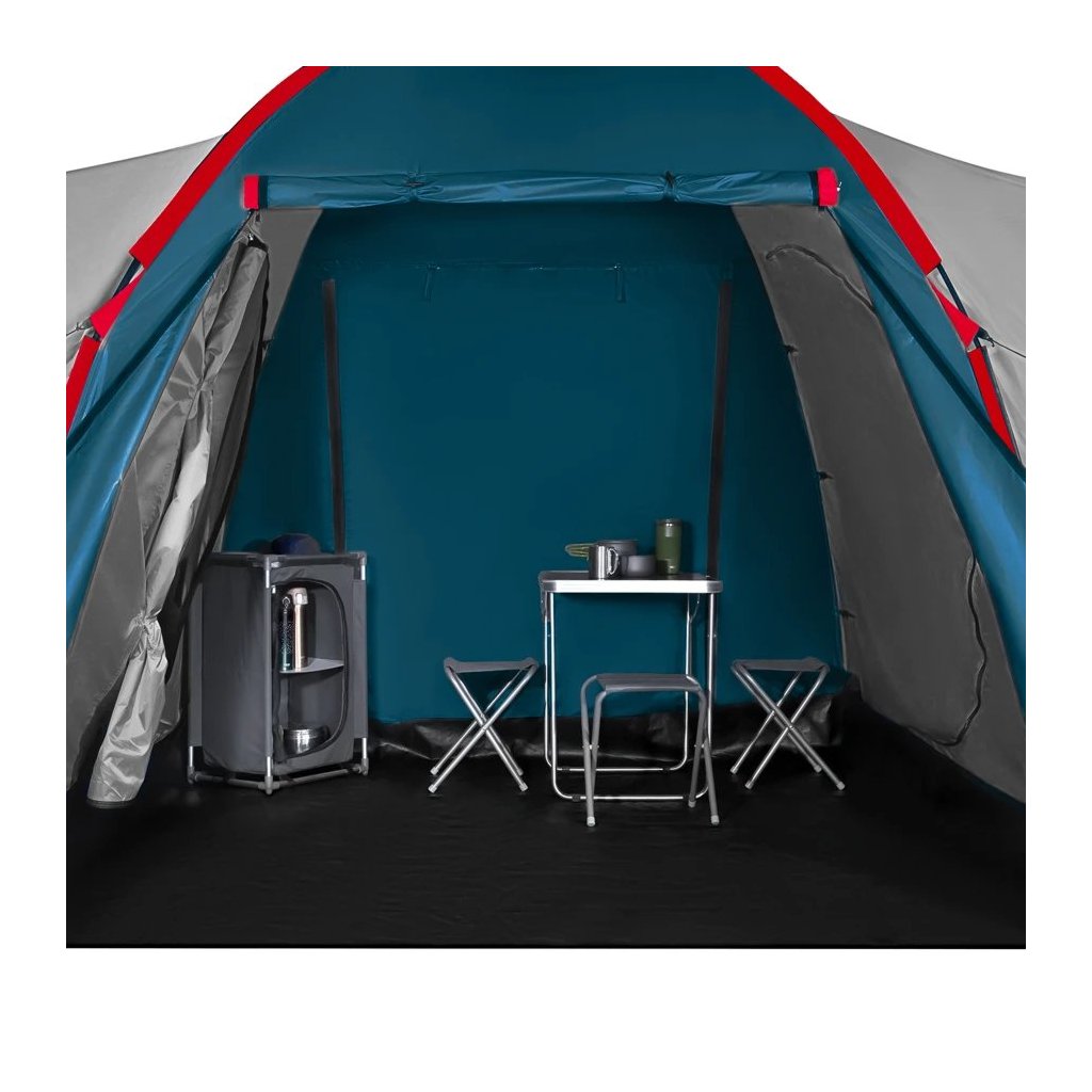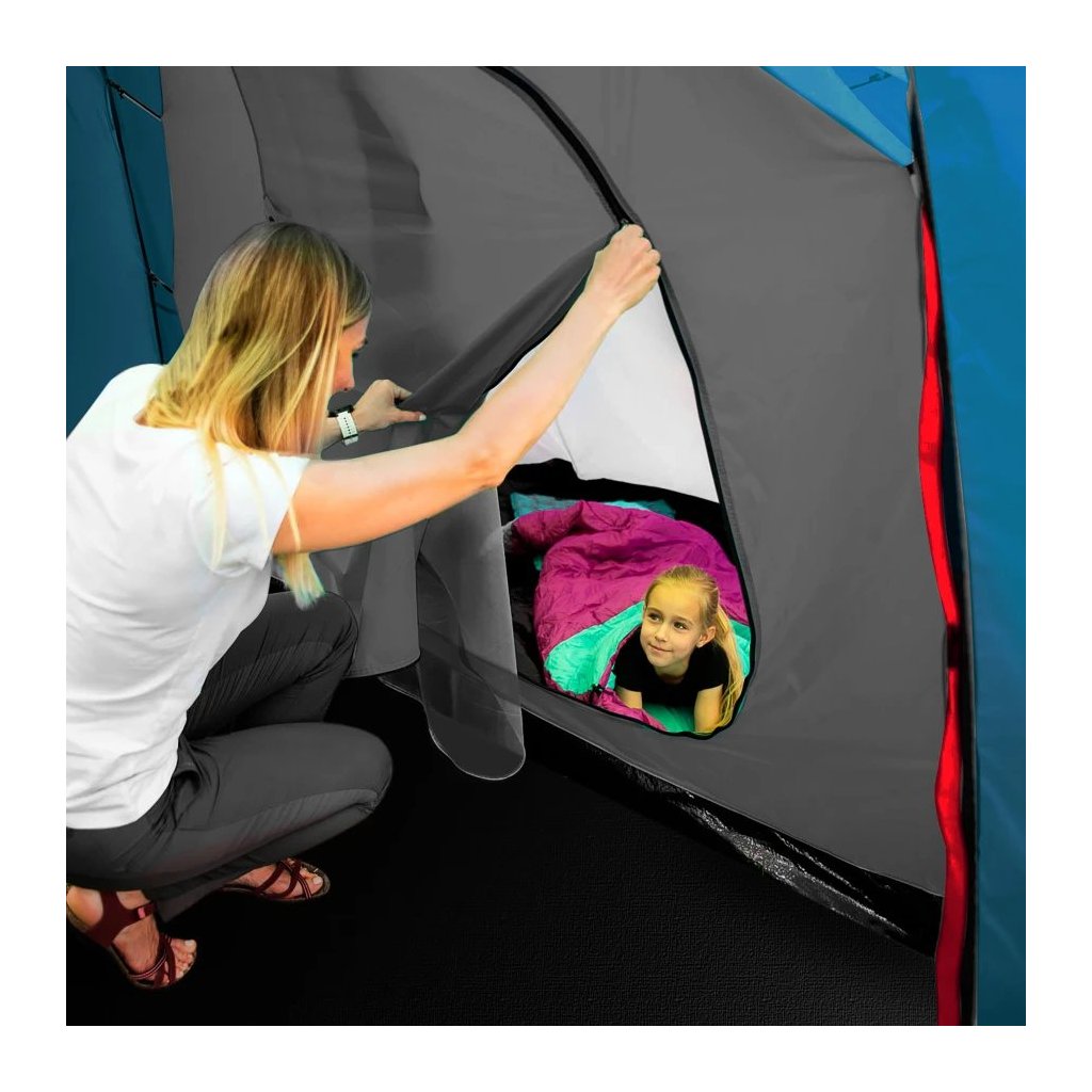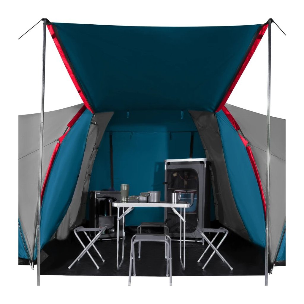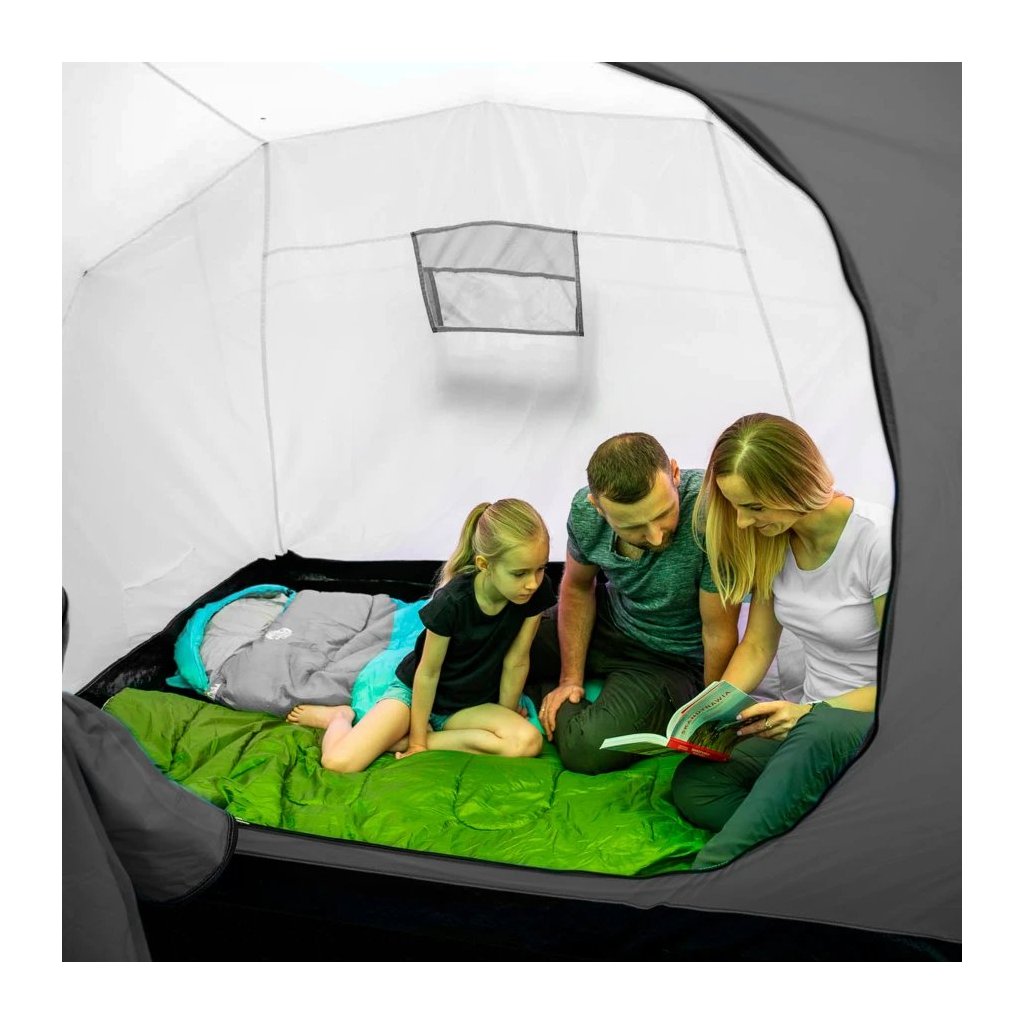 - Priestor pre celú rodinu: Highland ponúka dve samostatné spálne, každú pre tri osoby, a veľkú predsieň s rozmermi 210 × 210 × 200 cm. To je dostatok priestoru na pohodlný pobyt vo vnútri stanu – či už odpočívate, alebo sa schovávate pred dažďom.