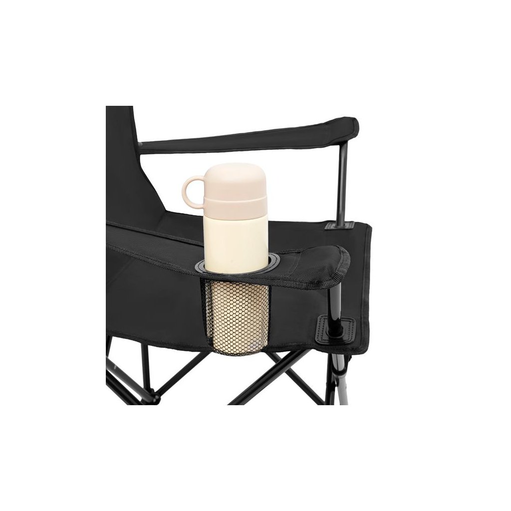 NILS Camp NC3301 je turistická stolička doplnená o bočný držiak nápojov. Jej konštrukcia zaisťujú komfortný odpočinok bez ohľadu na miesto – či už ide o dovolenku v kempe, piknik v parku alebo posedenie s priateľmi na záhrade. Sedák a operadlo sú vyrobené z odolného polyesteru 600D s PE záterom, odolného proti oderu a vlhkosti. Čierny lem zaisťuje čistý vzhľad a celú stoličku drží stabilný oceľový rám s čiernym práškovým lakom.
