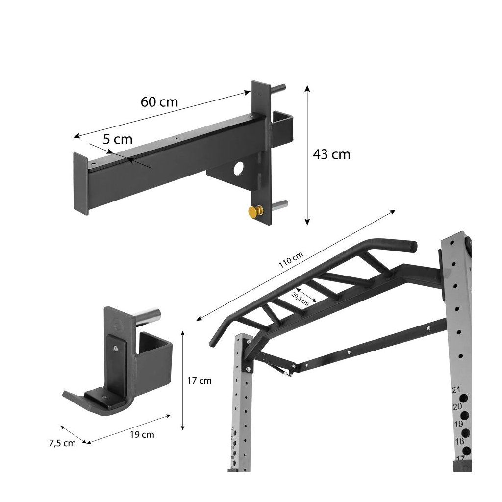 Stojan má multifunkčnú hrazdu, ktorá vám vďaka rôznym možnostiam úchopu umožní rozvíjať chrbtové, ramenné a hrudné svaly. Príťahy sú jedným z najlepších cvikov pre hornú časť tela, pretože zapájajú viacero svalových skupín a zlepšujú pohyblivosť kĺbov. Ak si chcete toto cvičenie uľahčiť, stačí použiť špeciálne odporové gumy. Na KLT23 nájdete aj dva háky na os, ktoré môžete upevniť v akejkoľvek výške.