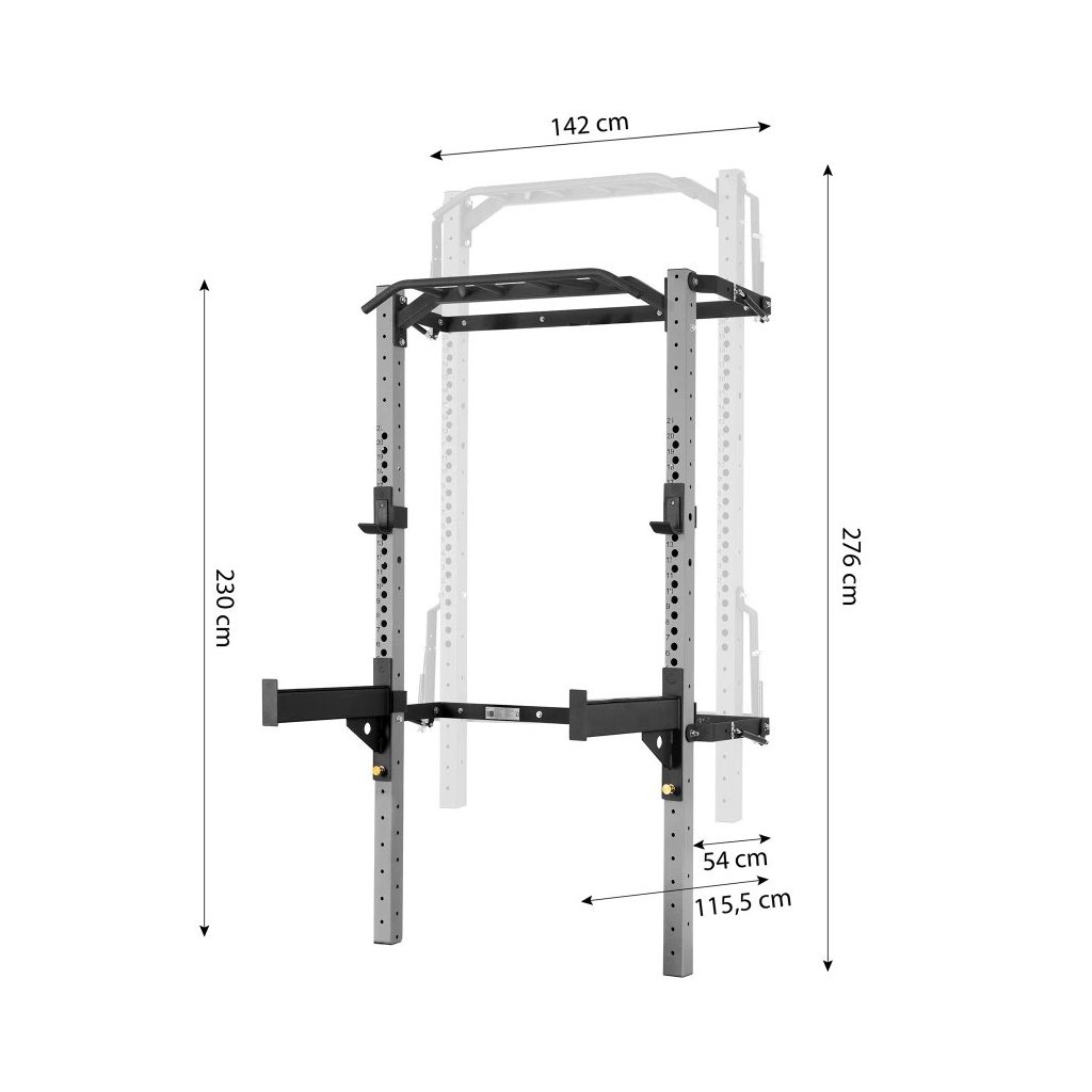 Stojan KLT23 Power Rack obsahuje aj špeciálne podpery, ktoré môžete pripevniť k rámu stojana, aby ste zaistili maximálnu bezpečnosť pri tréningu s ťažkými váhami. Podpery je možné pripevniť takmer v akejkoľvek výške a môžete ich použiť pri vykonávaní cvikov, ako je napríklad tlak na lavičke alebo drepy s činkou, bez toho, aby ste sa museli obávať, že už nebudete mať dostatok sily na zatlačenie činky späť do hákov. S KLT23 môžete posúvať hranice vlastnej sily.