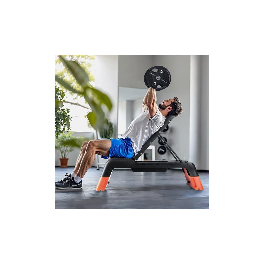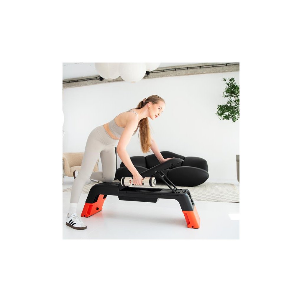 Počas pár sekúnd môžete schodík premeniť na plnohodnotnú posilňovaciu lavicu! Možnosť nastavenia operadla do troch rôznych uhlov umožňuje vykonávať širokú škálu silových cvikov, napr. s činkami alebo odporovými gumami. Toto riešenie kombinuje kondičné so silovým tréningom a umožňuje vám naplno využiť potenciál vášho tela.