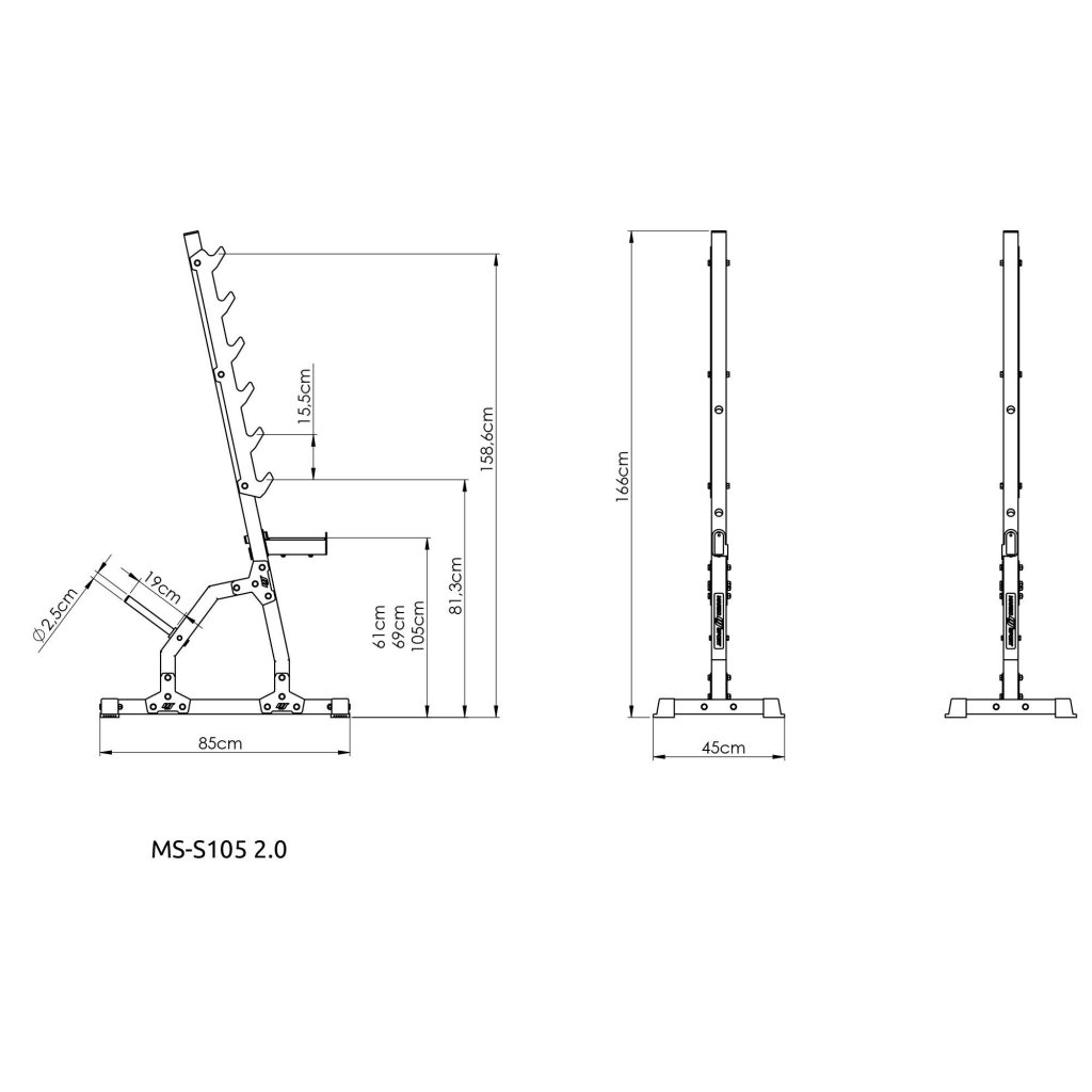Stojany MS-S105 2.0 je možné umiestniť na akýkoľvek povrch – dlažbu, parkety alebo laminátovú podlahu. Gumové nôžky zabránia poškriabaniu podlahy a zároveň zaistia stabilitu konštrukcie, takže sa počas cvičenia nebude posúvať.
