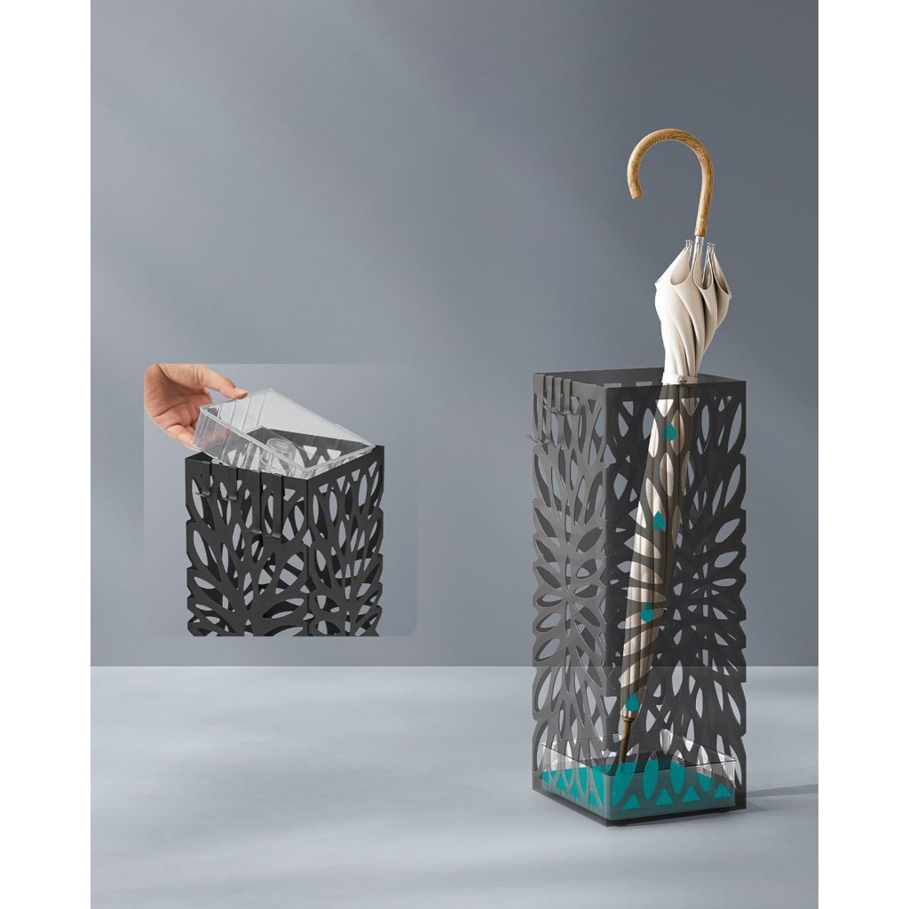 Tento kovový držiak na dáždniky kombinuje funkčnosť a štýl, čím zaručuje, že vaše dáždniky budú vždy po ruke, čisté a správne usporiadané. S jeho robustným a štýlovým dizajnom bude skvelým doplnkom do akéhokoľvek priestoru.