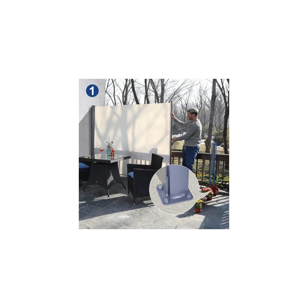 Bočná markíza SONGMICS bola pre vašu bezpečnosť certifikovaná spoločnosťou TÜV SÜD. Hodí sa na terasu a balkón, pričom vás ochráni pred slnkom, slabým vetrom i očami susedov. Markíza sa najskôr pripevní k stene domu pomocou nástenných konzol. Stĺpik markízy je buď ukotvený priamo k zemi, alebo nasunutý na dodávanú konzolu priskrutkovanú k podlahe terasy. Stĺpy markízy sú vyrobené z nehrdzavejúceho kvalitného hliníka, ktorý je lakovaný a nehrdzavejúci. Plne natiahnutá markíza (vrátane markízy a stĺpikov) je dlhá 3 metre a dá sa ľahko vysunúť, bezpečne pripevniť k stĺpiku markízy a zasunúť späť do kazety s funkciou zatiahnutia. Užite si teda nikým nerušené raňajky na terase!