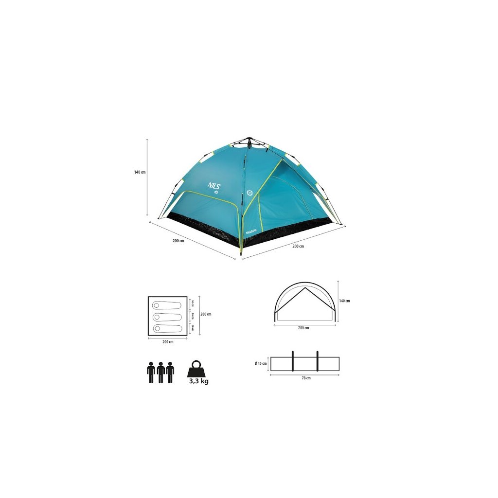 NILS Camp NC7819 Shadow je stan pre 3 osoby, ktorý oceníte pri potulkách prírodou, spaní v "tieni" alebo počas krátkeho pobytu v kempe. Odnímateľnú tropikovú striešku môžete použiť ako prístrešok, ktorý vás ochráni pred dažďom alebo slnkom. Automatická skladacia konštrukcia zaručuje rýchle zloženie a rozloženie stanu.