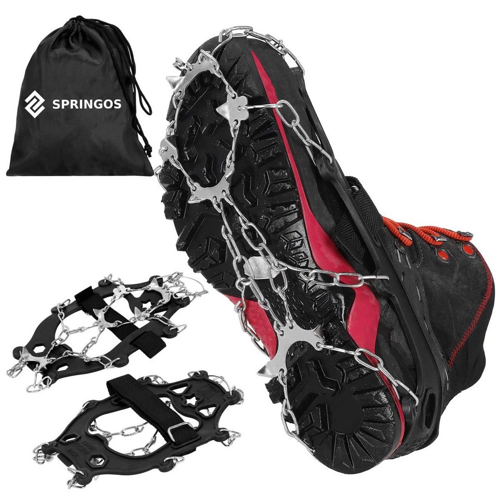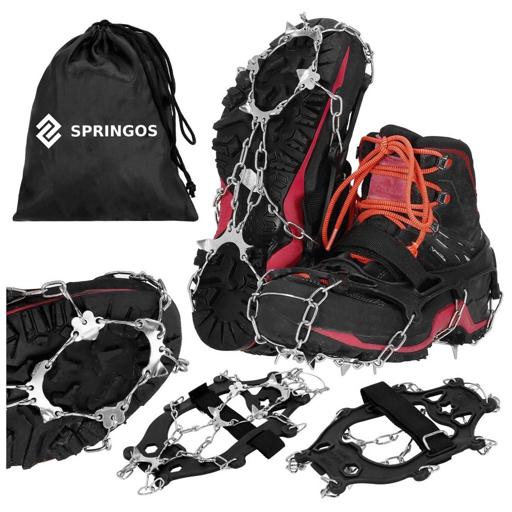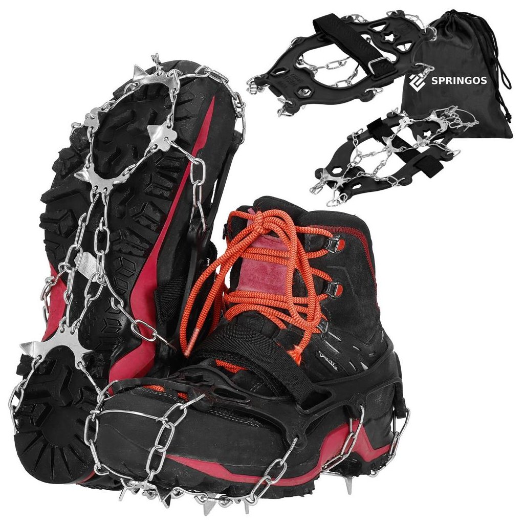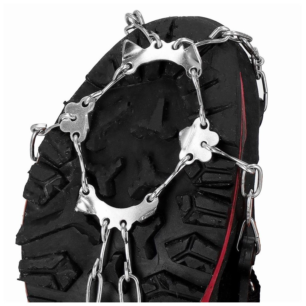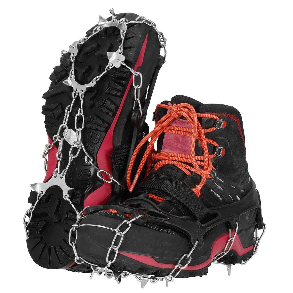 S týmito protišmykovými návlekmi na topánky zvládnete strmé stúpania aj klesania s väčšou istotou a stabilitou. Vďaka oceľovým hrotom získate spoľahlivú priľnavosť k povrchu, či už kráčate po blate, snehu alebo ľade. To znamená menšie riziko pošmyknutia a zranenia počas zimných prechádzok alebo turistiky. Návleky sú vyrobené z kombinácie odolnej ocele a pružného materiálu TPE, ktorý sa ľahko prispôsobí obuvi a zároveň odoláva nízkym teplotám. V sade nájdete aj dva remienky na suchý zips pre pevnejšie uchytenie a praktické puzdro so sťahovačom na skladovanie či prenášanie.