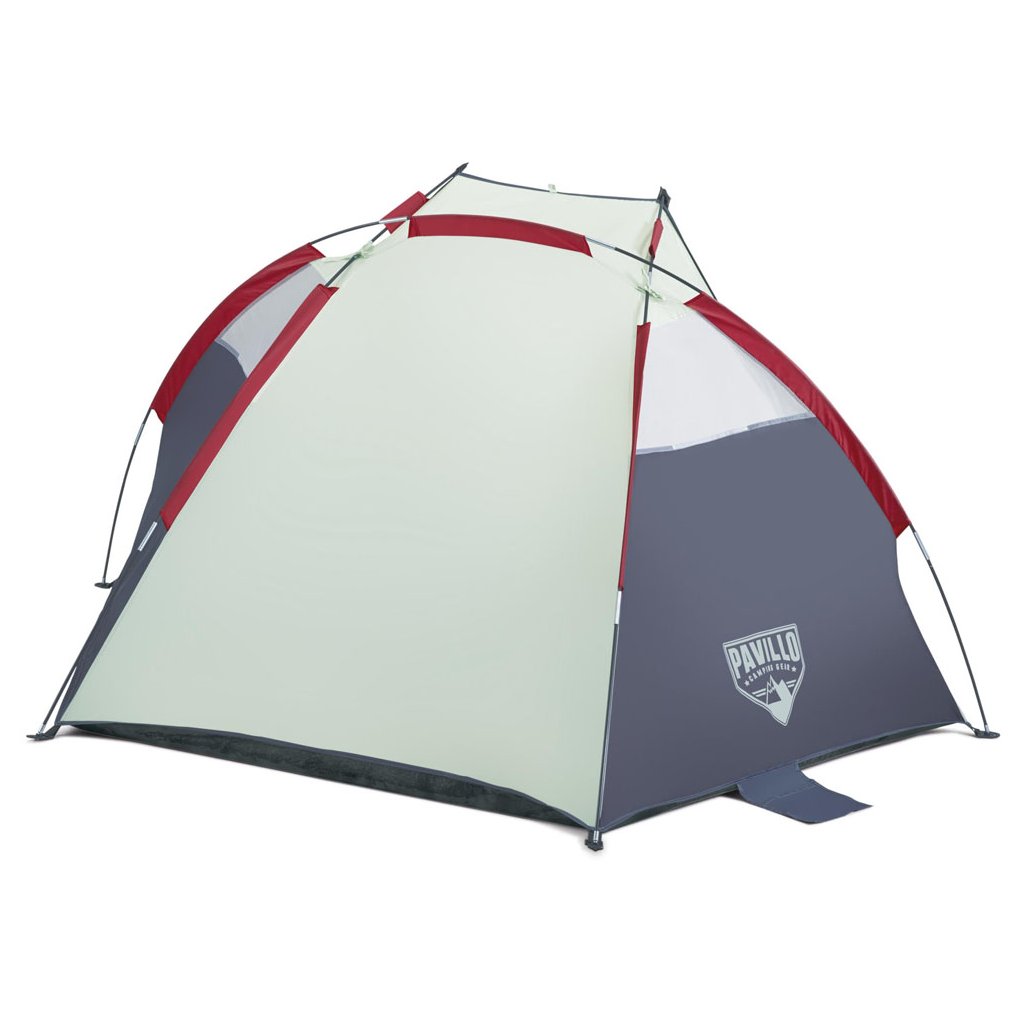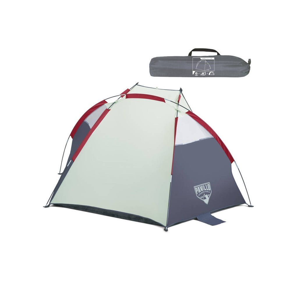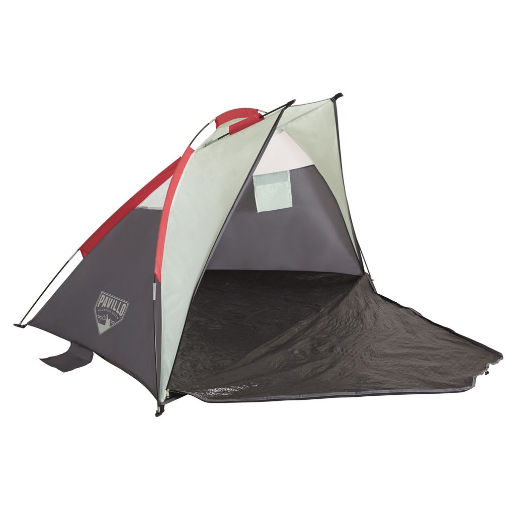 Materiál, z ktorého je stan vyrobený, je 170T polyester s membránou 110g/m², ktorá zaručuje účinnú ochranu pred dažďom a vlhkosťou. Takáto tkanina je tiež oveľa odolnejšia voči roztrhnutiu, vyblednutiu a nečistotám. A ak áno, je veľmi ľahké ho vyčistiť vlhkou handričkou. Turistický a plážový stan Bestway má aj vlastnú podlahu, ktorá nám poskytuje dodatočnú ochranu pred pieskom a trávou.