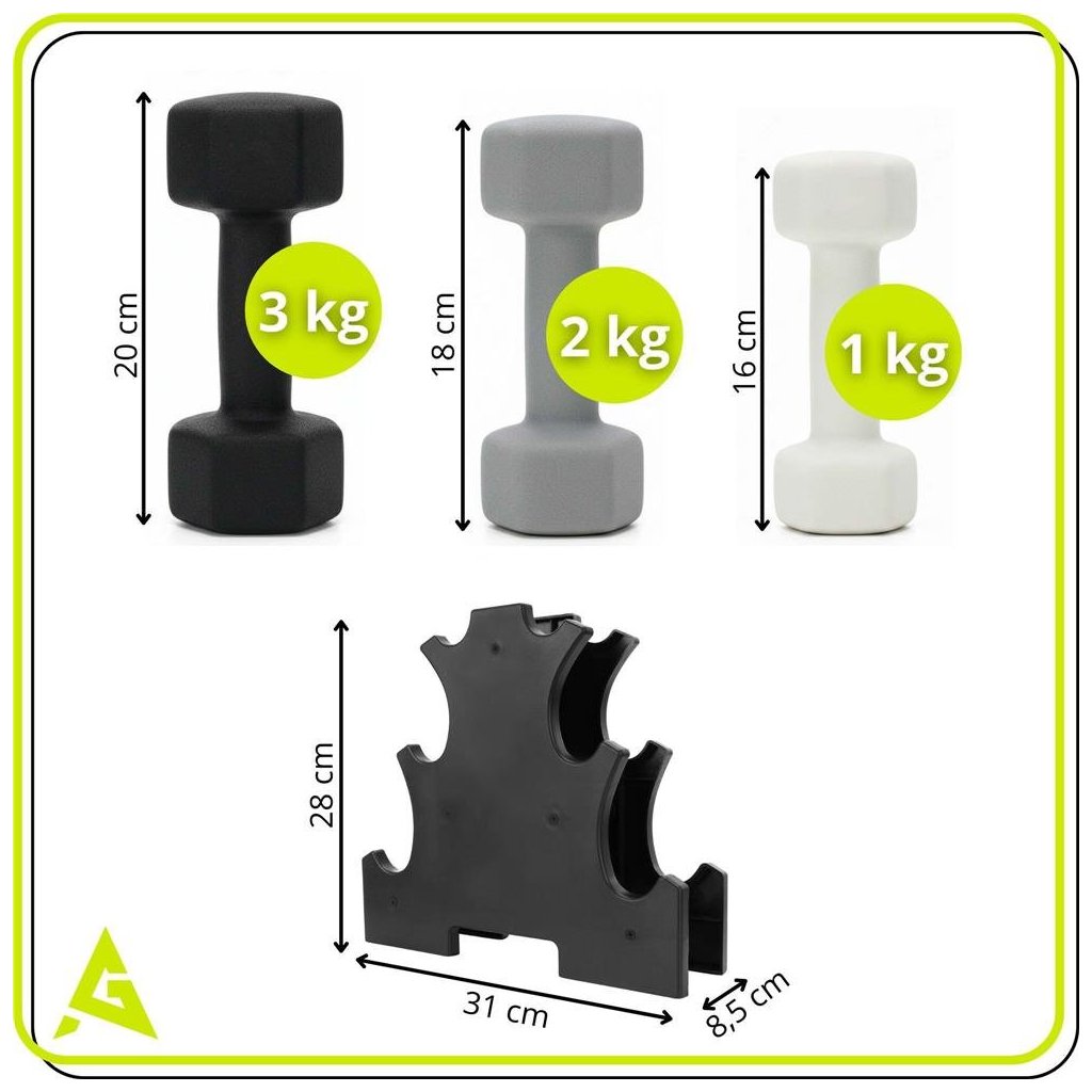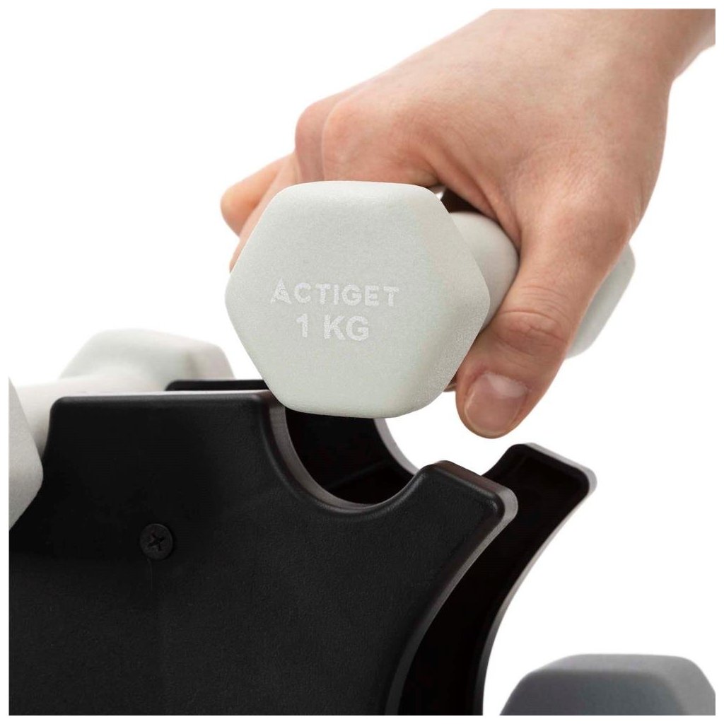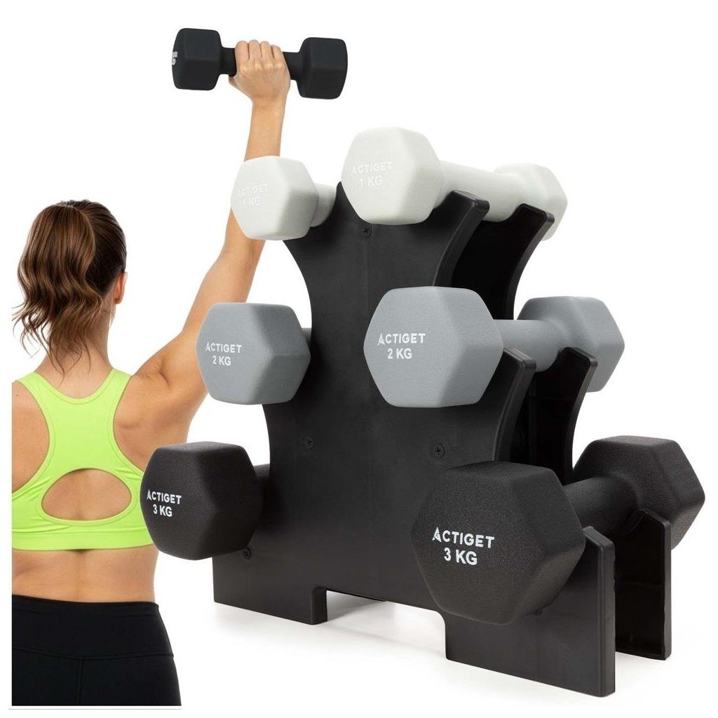 Sada činiek Actiget ACT0169 je praktické a univerzálne riešenie pre domáce cvičenie, posilňovanie aj rehabilitáciu. Vďaka šesťhrannému tvaru činiek, neoprénovému povrchu a stabilnému stojanu ponúka maximálny komfort, bezpečnosť a poriadok pri tréningu.