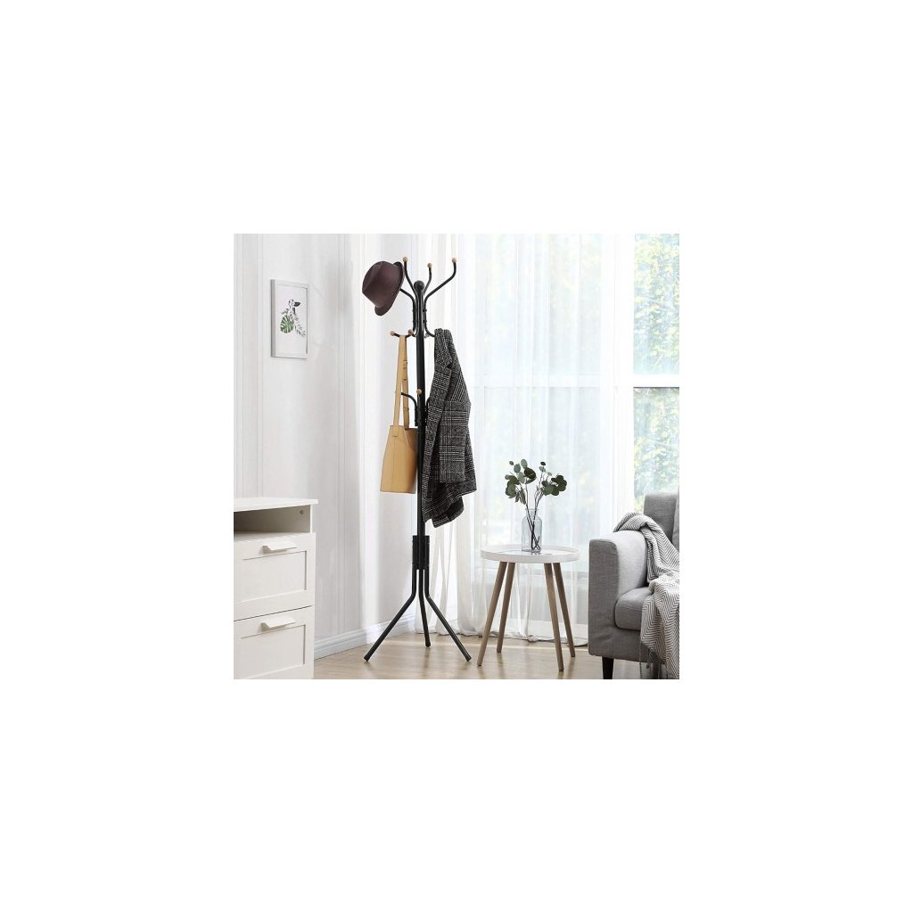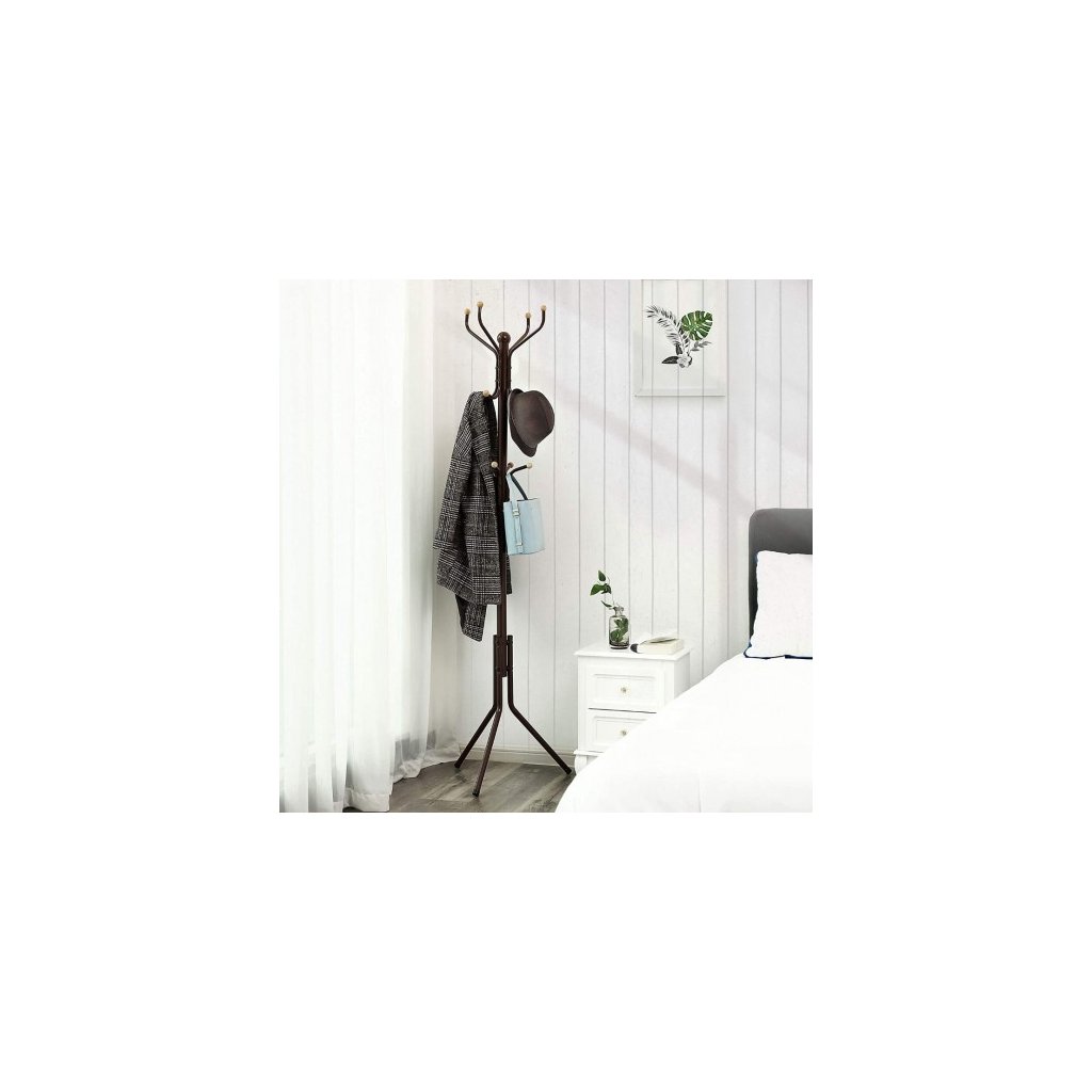 Vďaka jednoduchému, čistému, ale funkčnému dizajnu poskytuje vešiak SONGMICS skvelého pomocníka pri dodržiavaní poriadku. Vešiak je vhodný na zavesenie kabátov, búnd a čiapok na horné háky a tašiek na stredné háky. Háky sú zaopatrené plastovými koncovkami, aby sa sa predišlo poškodeniu oblečenia. Dokopy je na vešiaku 12 hákov. Vešiak je stabilný vďaka 3 nohám.