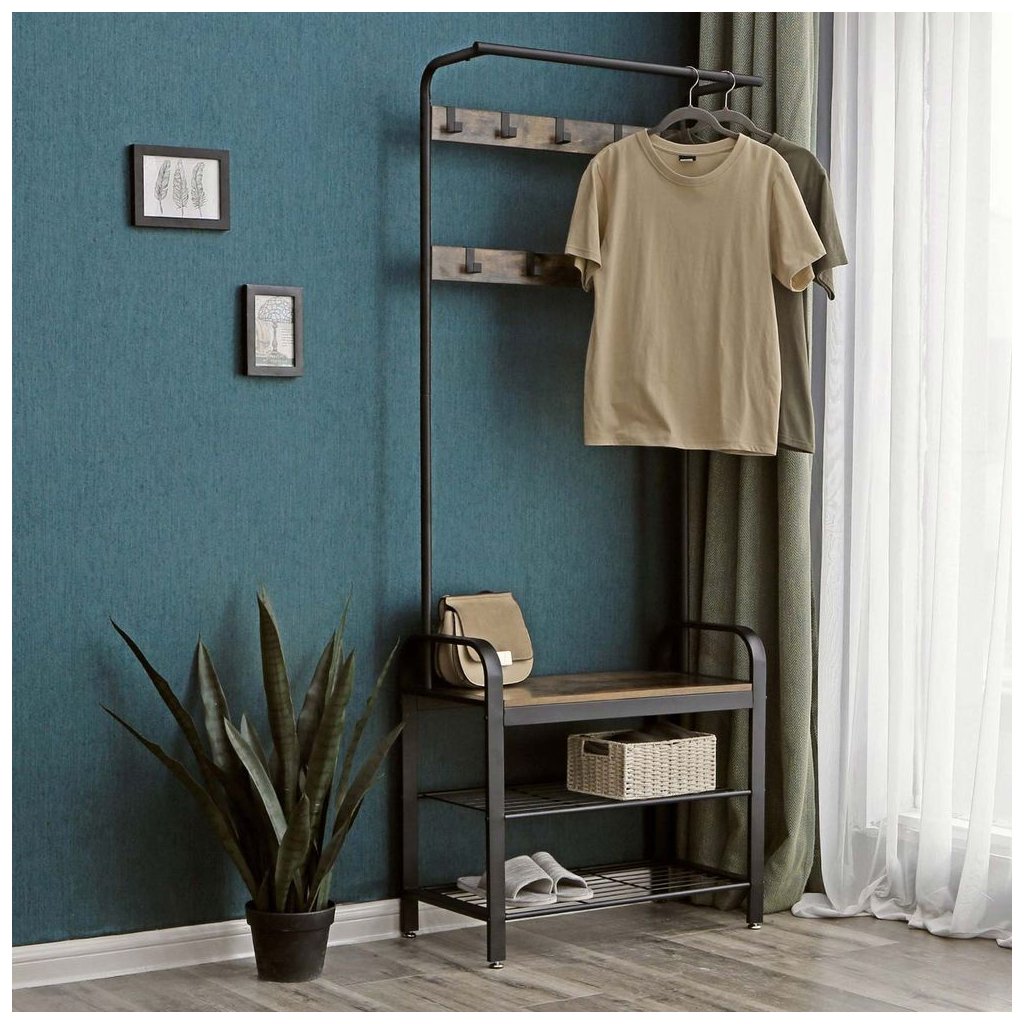 Niektorý nábytok vyzerá dobre, ale nie je príliš praktický. Iný je funkčný, ale pôsobí chladne a nudne. Stojan značky VASAGLE s rustikálne hnedými, teplými tónmi dreva, stabilnými policami a početnými háčikmi na kabáty, získavá to najlepšie z oboch svetov. Silný oceľový rám a robustná rustikálne hnedá polica sú presne elegantnou kombináciou štýlov, ktoré dávajú pútavému stojanu na kabáty individuálny charakter, pozoruhodnú životnosť a vysokú nosnosť až 3 kg na háčik a 80 kg na drevenú policu. Tento stojan má nielen 9 robustných háčikov a koľajničku na šaty v hornej časti, ale ponúka tiež dve kovové drôtené police na topánky a robustnú lavicu, na ktorú si môžete pohodlne sadnúť, keď sa obuváte.