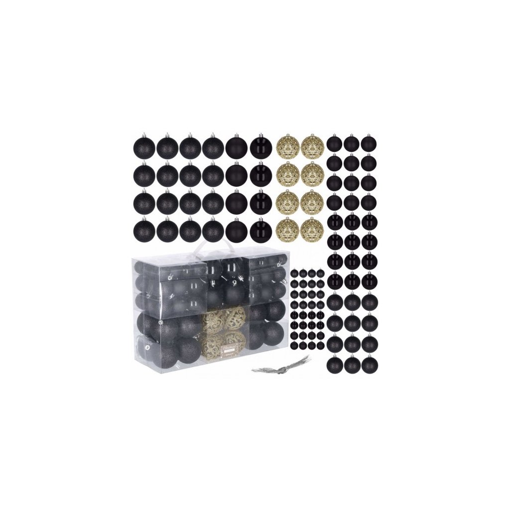 Sada nerozbitných vianočných gulí - čierno-zlaté, 100 ks