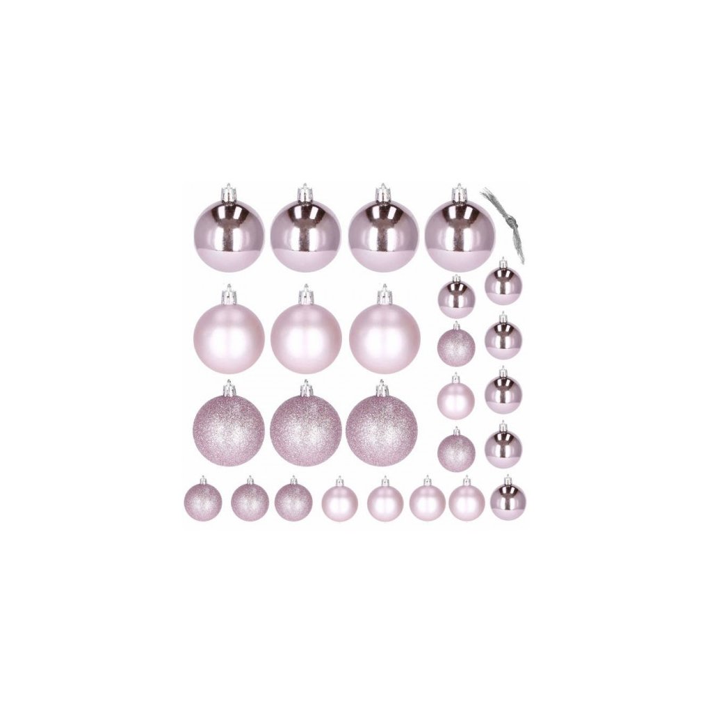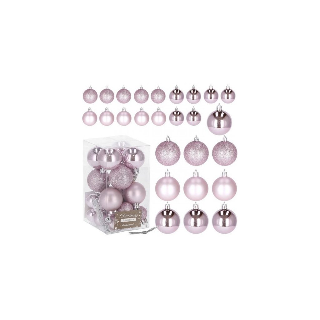Vianočné gule značky SPRINGOS v ružovej farbe pre všetkých, ktorí si chcú spestriť vianočný stromček, adventné vence či vianočné ikebany. Spolu v balení nájdeme 25 ks nerozbitných vianočných gúľ, ktoré majú rôzny povrch (matný, trblietavý, lesklý).
