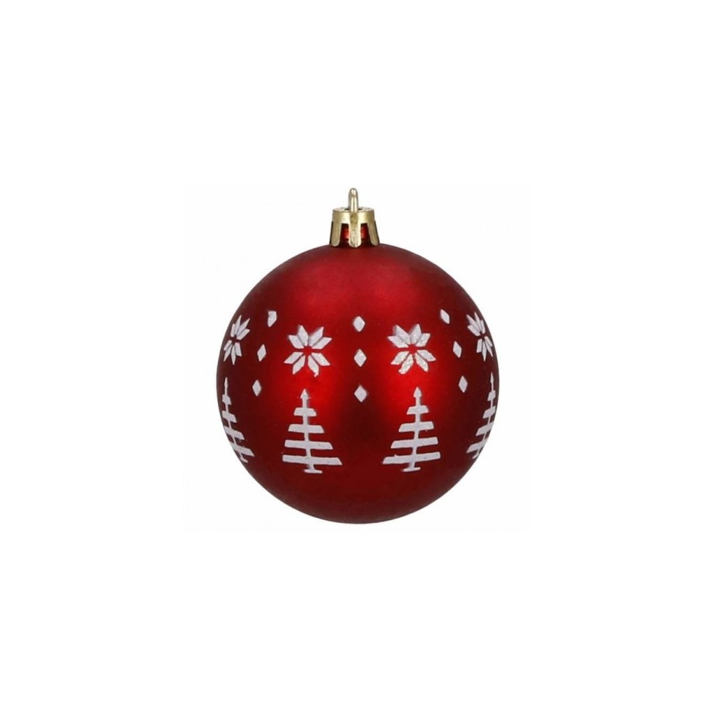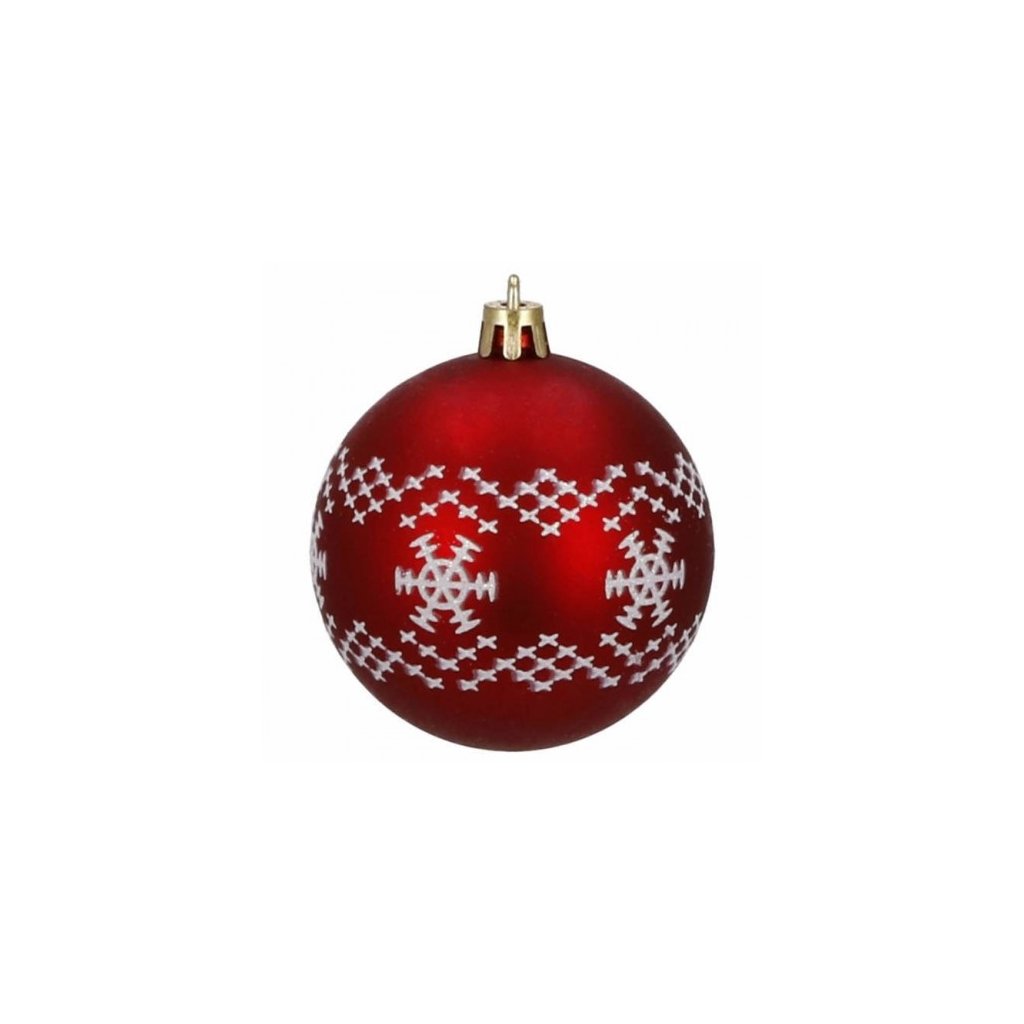 - 10 x matná červená guľa s červenými vzormi (7 cm)