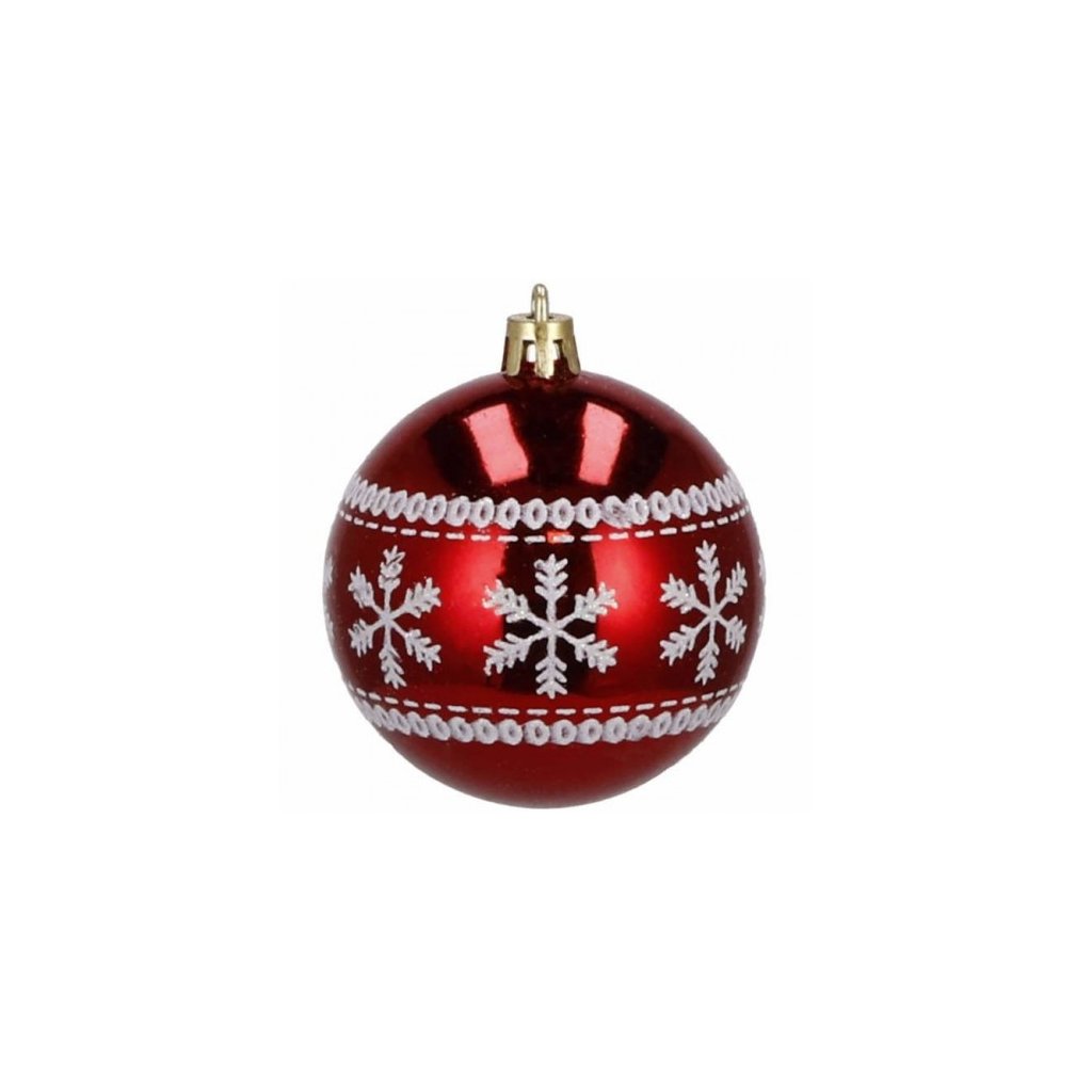 - 10 x lesklá červená guľa s bielymi vzormi (7 cm)