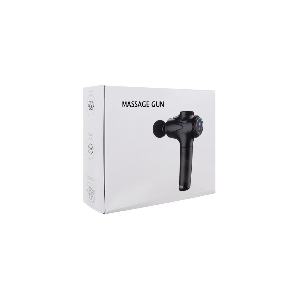 Jedna z najsilnejších a najefektívnejších masážnych pištoli na trhu! V porovnaní s inými modelmi, ktoré ponúkajú pištoľ iba s 2 batériami, má náš model až 6! To umožňuje nepretržitú prevádzku po veľmi dlhú dobu na jedno nabitie. Jej výkon je špičkový! Maximálna masážna sila s 20 nastaviteľnými programami. Pištoľ má prehľadný displej, ktorý zobrazuje program, takže nad ním máte neustálu kontrolu. Intenzita práce sa mení pomocou výstražného dotykového panela, stačí sa ho len jemne dotknúť - pre zmenu režimu nemusíte stlačiť. Pištoľ Vám umožní masírovať aj doma, bez potreby stálych návštev fyzioterapeuta, ktoré sú drahé! Prístroj zmierni bolestivosť, stuhnutosť a bolesť svalov. Každá svalová skupina vyžaduje správny stimul a vďaka 4 rôznym nadstavcom je možné pracovať s mnohými, aj ťažko prístupnými svalmi. V sade nájdete nadstavce: guľatý, plochý, projektilový a vidlicový .Pištoľ je vyrobená z najkvalitnejších materiálov, perfektne padne do ruky. Miesto, kde ju držíme je pokryté protišmykovou štruktúrou, ktorá zabraňuje jej skĺznutiu počas liečby. Celá sada je zabalená v praktickom kufríku.