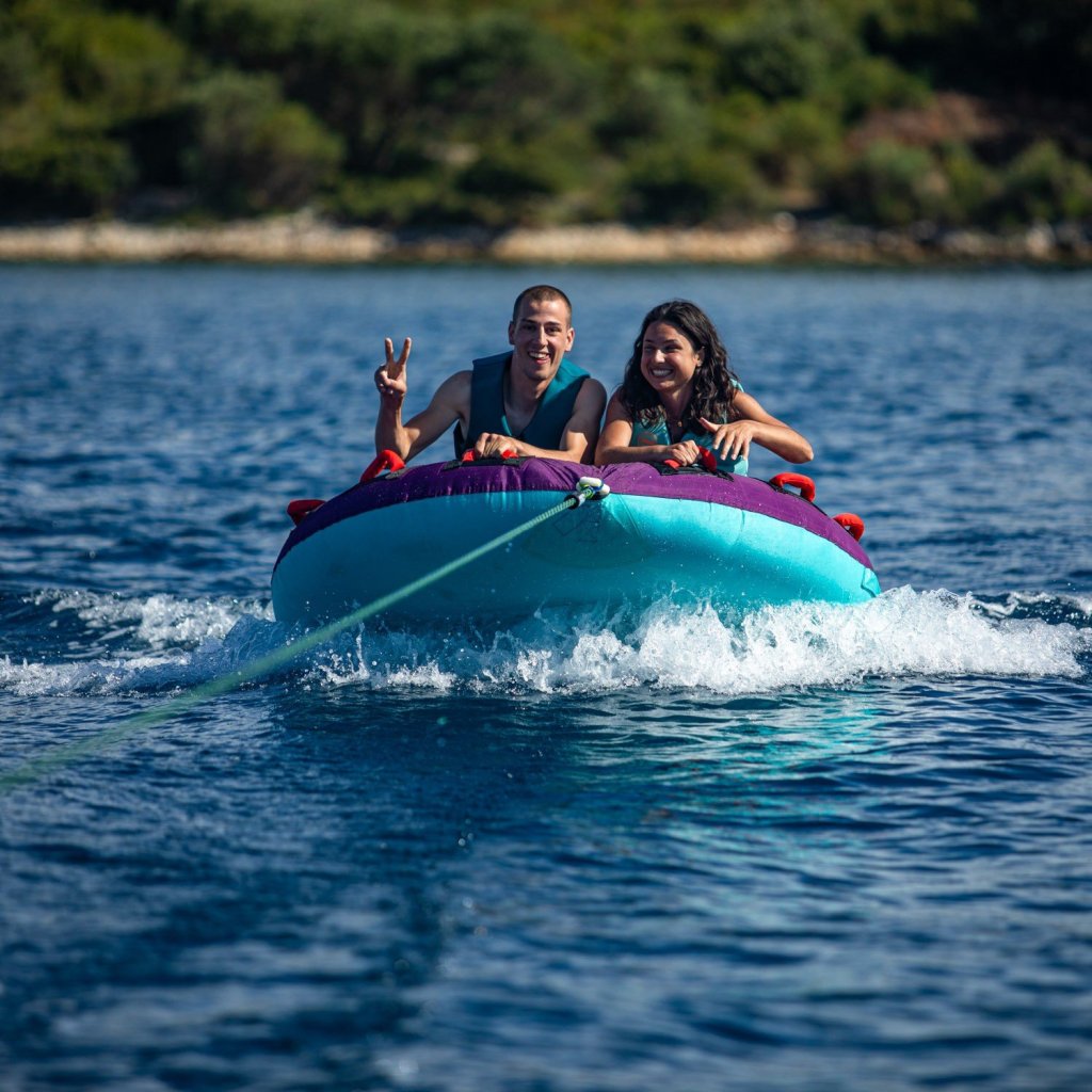 Ťahanie je jednoduché vďaka rýchlospojke a silnému ťažnému lanu s dĺžkou 18,3 metra. Vďaka bostonskému ventilu je nafukovanie a vyfukovanie hračkou. Ideálna voľba pre letnú zábavu na jazere, priehrade alebo pri mori.