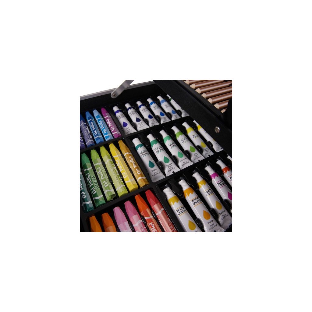 - MUSÍ BYŤ PORIADOK – po otvorení kufra nájdete množstvo kvalitných umeleckých materiálov, starostlivo usporiadaných a zaistených v určených priehradkách. To vám uľahčí udržiavanie zásob v poriadku a bez obáv z poškodenia alebo rozbitia vašich obľúbených pasteliek. Umelecká súprava má pre každého niečo - farbičky, pastelky a farby. To všetko v sýtych farbách, ktoré vyzerajú skvele na papieri či plátne.