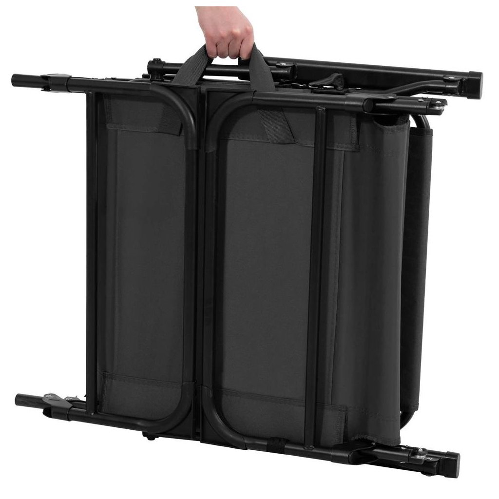 Vďaka dvojitej rukoväti na prenášanie a praktickému suchému zipsu na zaistenie v zloženej polohe je manipulácia s ležadlom jednoduchá a intuitívna. V zloženom stave zaberie minimum miesta, čo oceníte nielen pri skladovaní doma, ale aj pri cestovaní autom alebo karavanom.