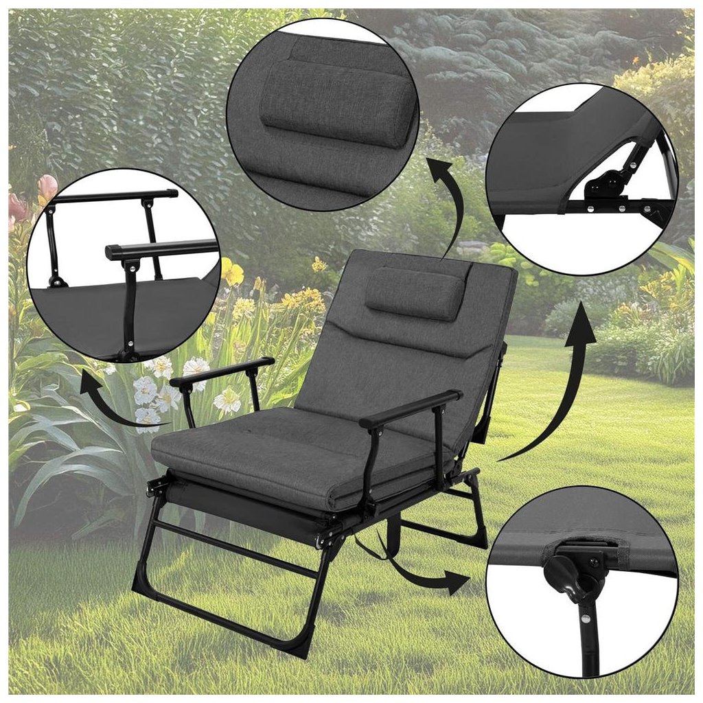 Užite si plnohodnotný relax v záhrade, na terase alebo na výlete v prírode s multifunkčným ležadlom 2v1 Springos®. Tento praktický a štýlový produkt vám poslúži nielen ako pohodlné záhradné kreslo, ale aj ako plnohodnotná kempingová posteľ, ideálna na dlhší oddych vonku. Model GC0067 kombinuje funkčnosť, odolnosť a pohodlie v jednom kompaktnom a ľahko prenosnom balení.
