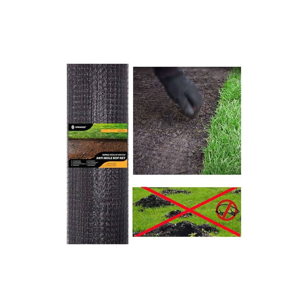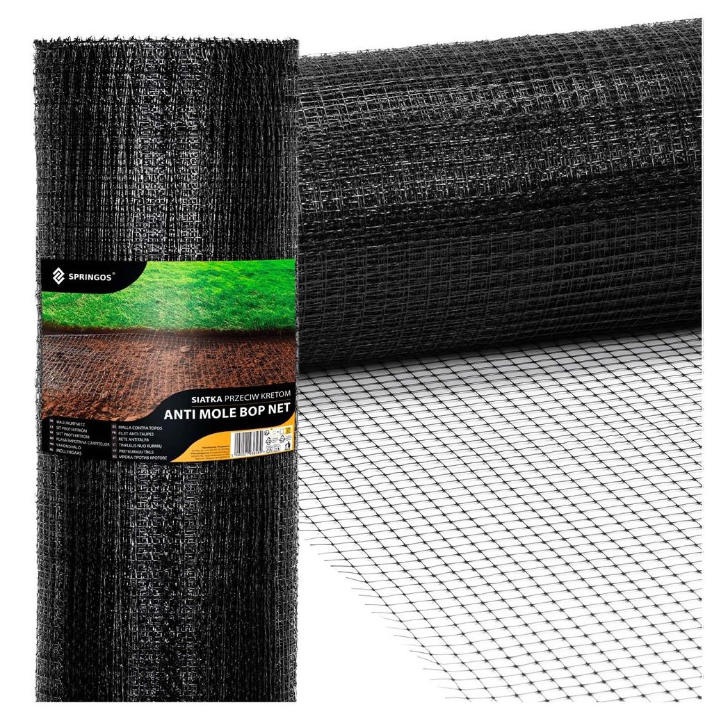 Sieťka proti krtkom Springos je účinným spôsobom ochrany trávnika pred inváziou krtkov, hrabošov, ale aj iných hlodavcov napádajúcich trávniky a rastliny v našich záhradách. Sieť pozostáva z husto tkaných ôk vystužených dodatočnou vrstvou materiálu. Vyznačuje sa vysokou pevnosťou a odolnosťou proti vlhkosti a roztrhnutiu.