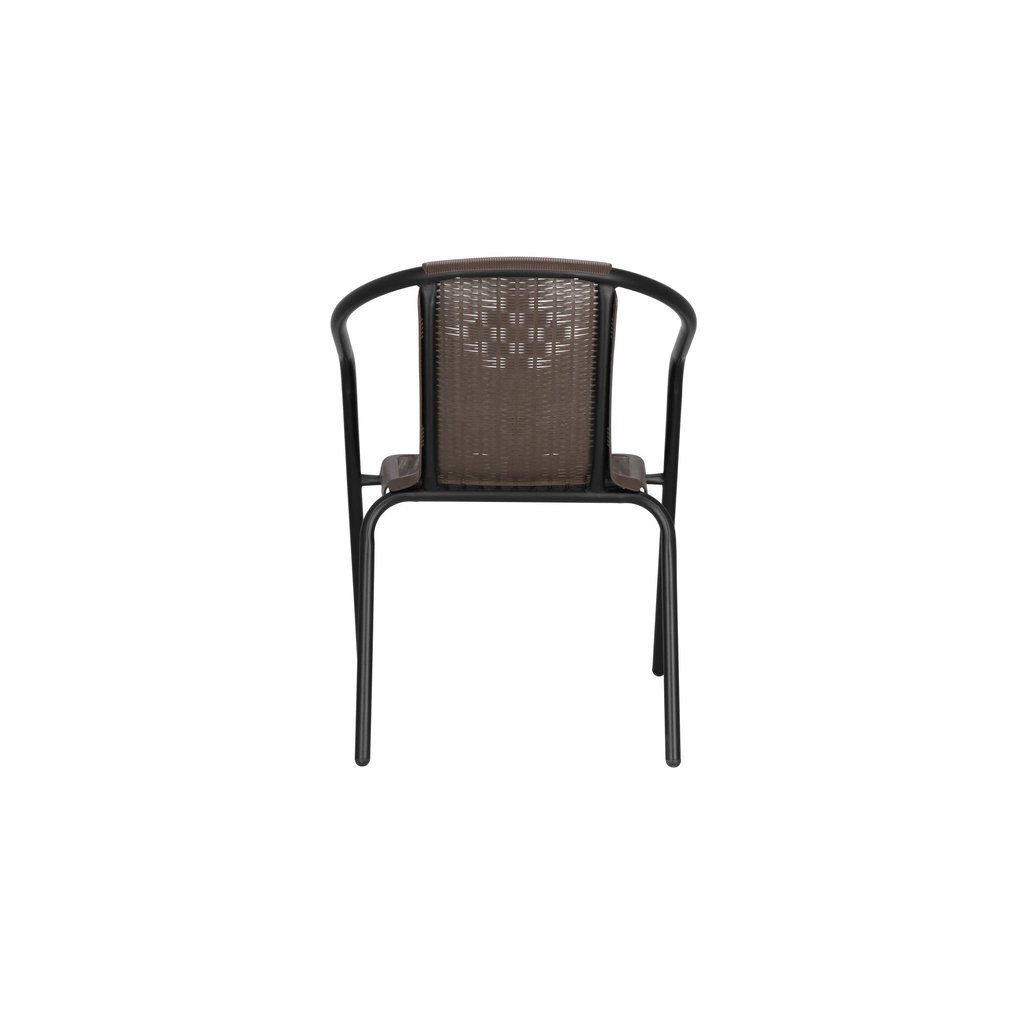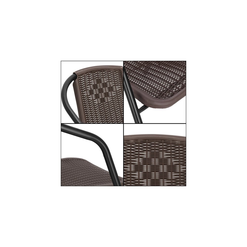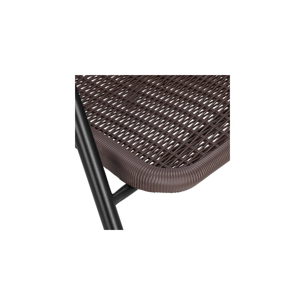 Stolička je vyrobená z kombinácie pevnej kovovej konštrukcie a odolného výpletu z materiálu imitujúceho ratan (textilná sieťovina), vďaka čomu je vhodná na dlhodobé používanie. Maximálna nosnosť je 120 kg. Hnedé sedadlo v kombinácii s čiernou konštrukciou pôsobí nadčasovo a ľahko sa kombinuje s moderným aj klasickým zariadením terasy, záhrady či balkóna. Či už plánujete príjemnú večeru pri sviečkach alebo oddych s knihou, táto stolička vám poskytne maximálne pohodlie.