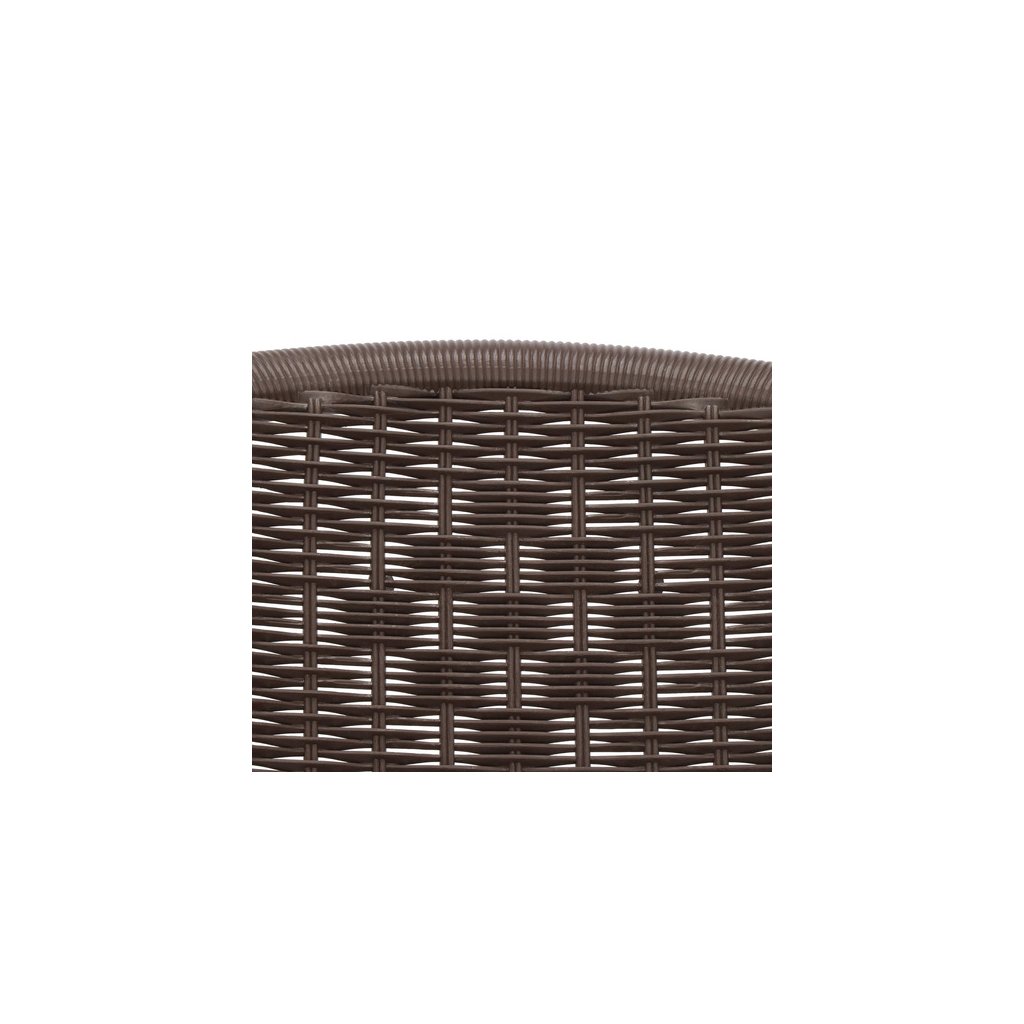 Unikátna pletená konštrukcia z odolného materiálu zabezpečuje komfort sedenia a zároveň vytvára štýlový dekoračný prvok. Použitý materiál je odolný voči poveternostným podmienkam, takže si stolička zachová svoj vzhľad aj po rokoch používania.Ergonomicky tvarované sedadlo a pevná kovová konštrukcia robia zo stoličky ideálne miesto na oddych. Vďaka univerzálnemu farebnému prevedeniu sa hodí do minimalistických aj prírodne ladených exteriérov.