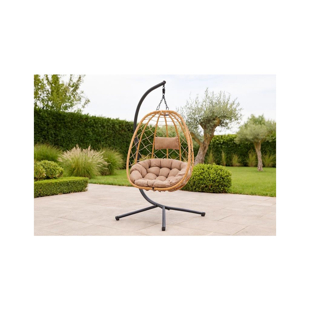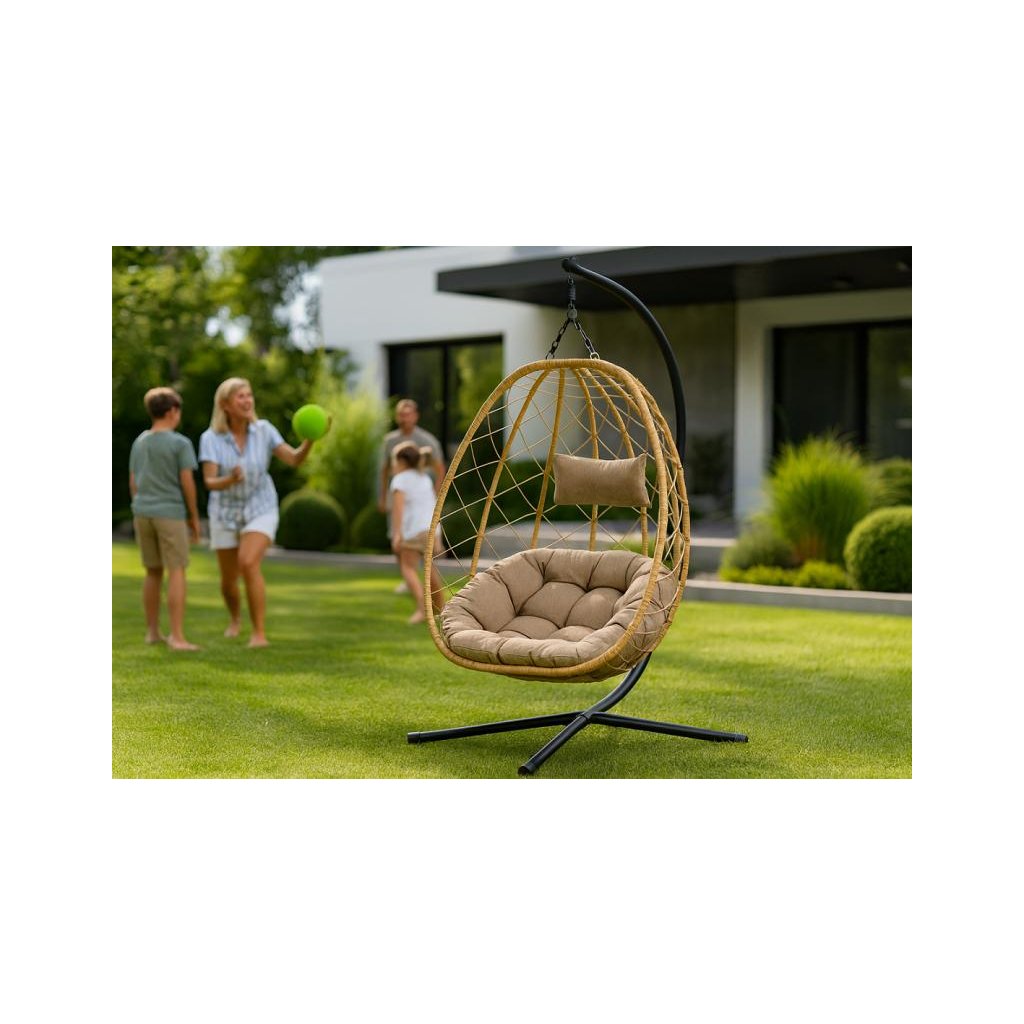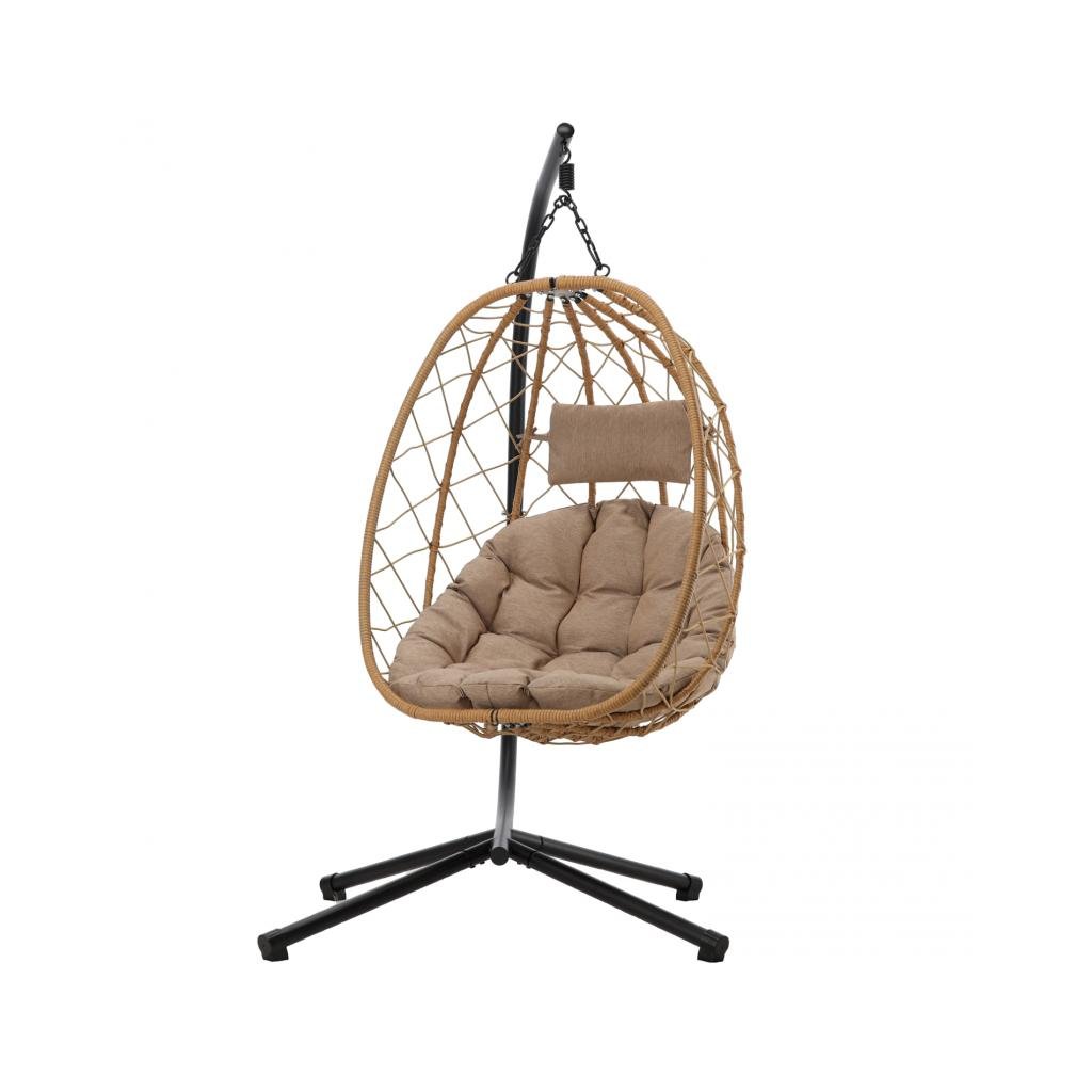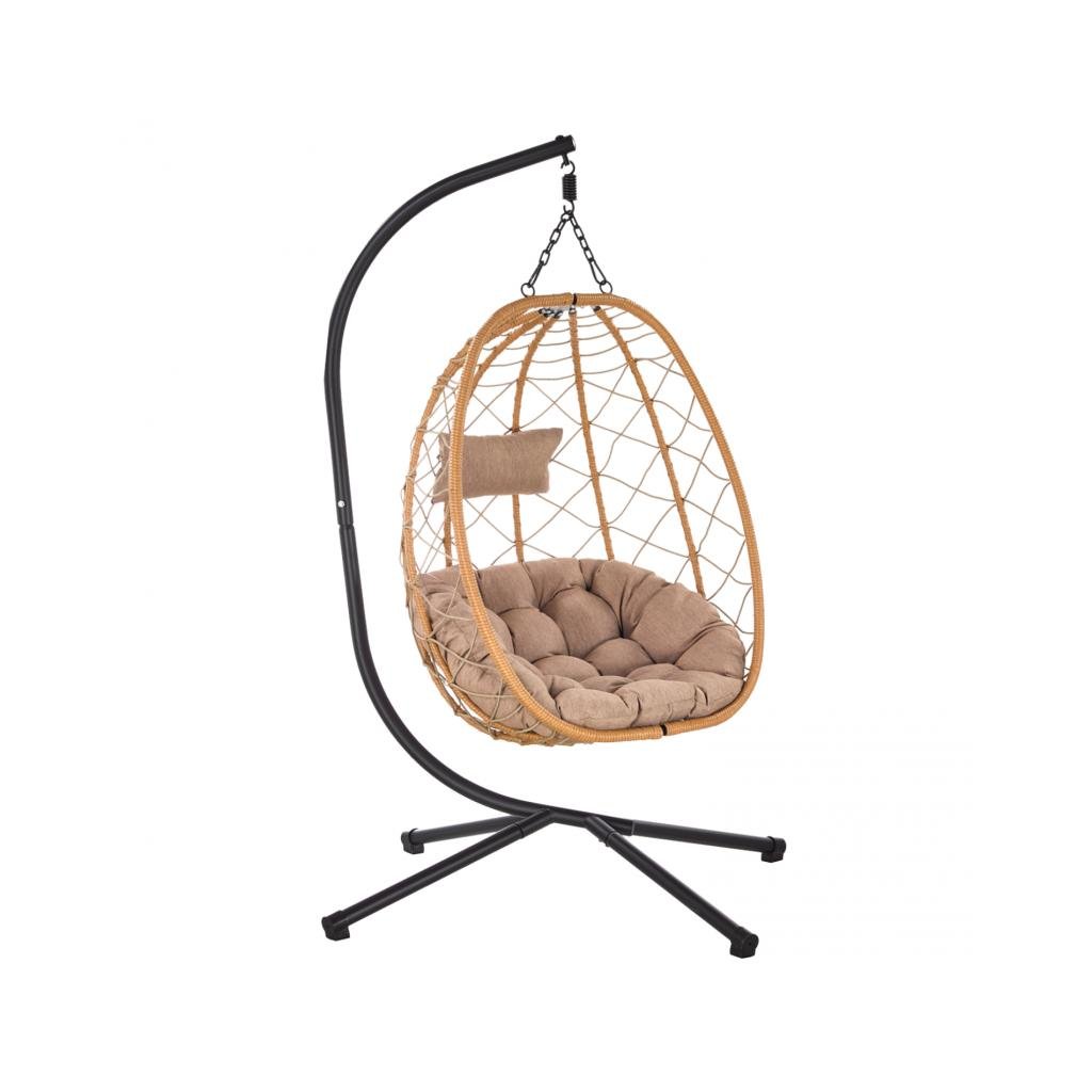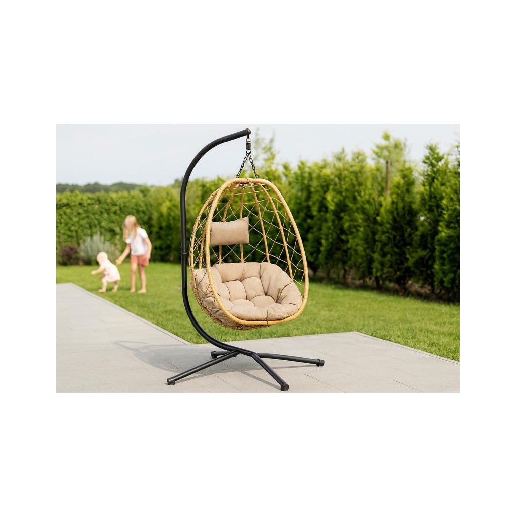 Závesné kreslo Garden Line béžovej farby s béžovým vankúšom a čiernym rámom FAT9100